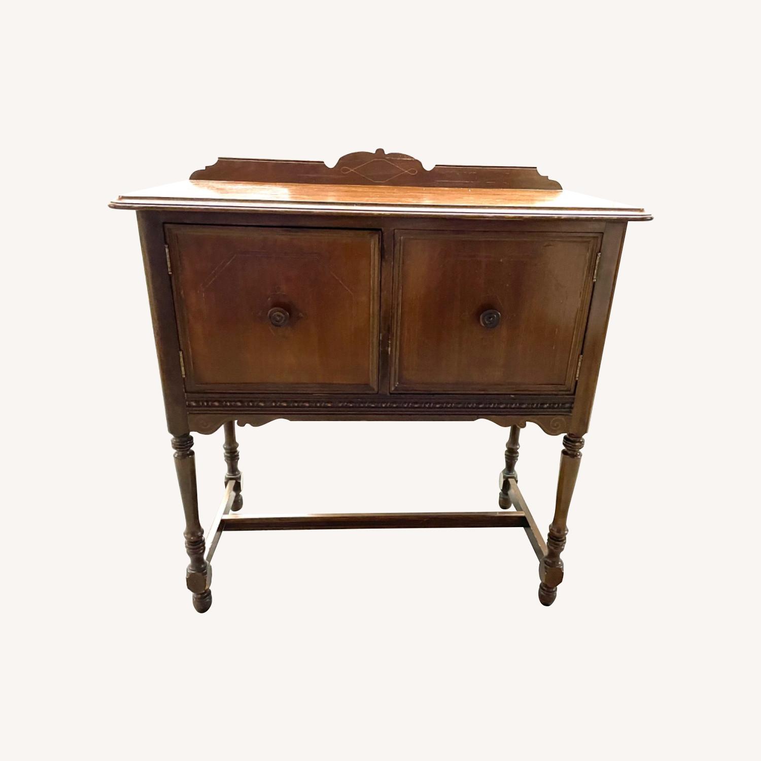 Seller's Notes:Antique Rockford Furniture Company carved mahogany sideboard. Beautifully detailed with minor signs of age. Faint scratches on the top of the piece add to its character. Elegantly turned legs and the engraved back panel (which adds 3 inches to total height) make this item a rarity. Wish I could keep but no space!