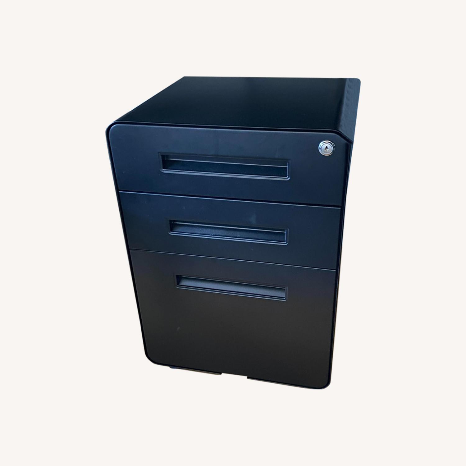 Seller's Notes:Black metal rolling file cabinet. (3) locking drawers. Excellent condition.