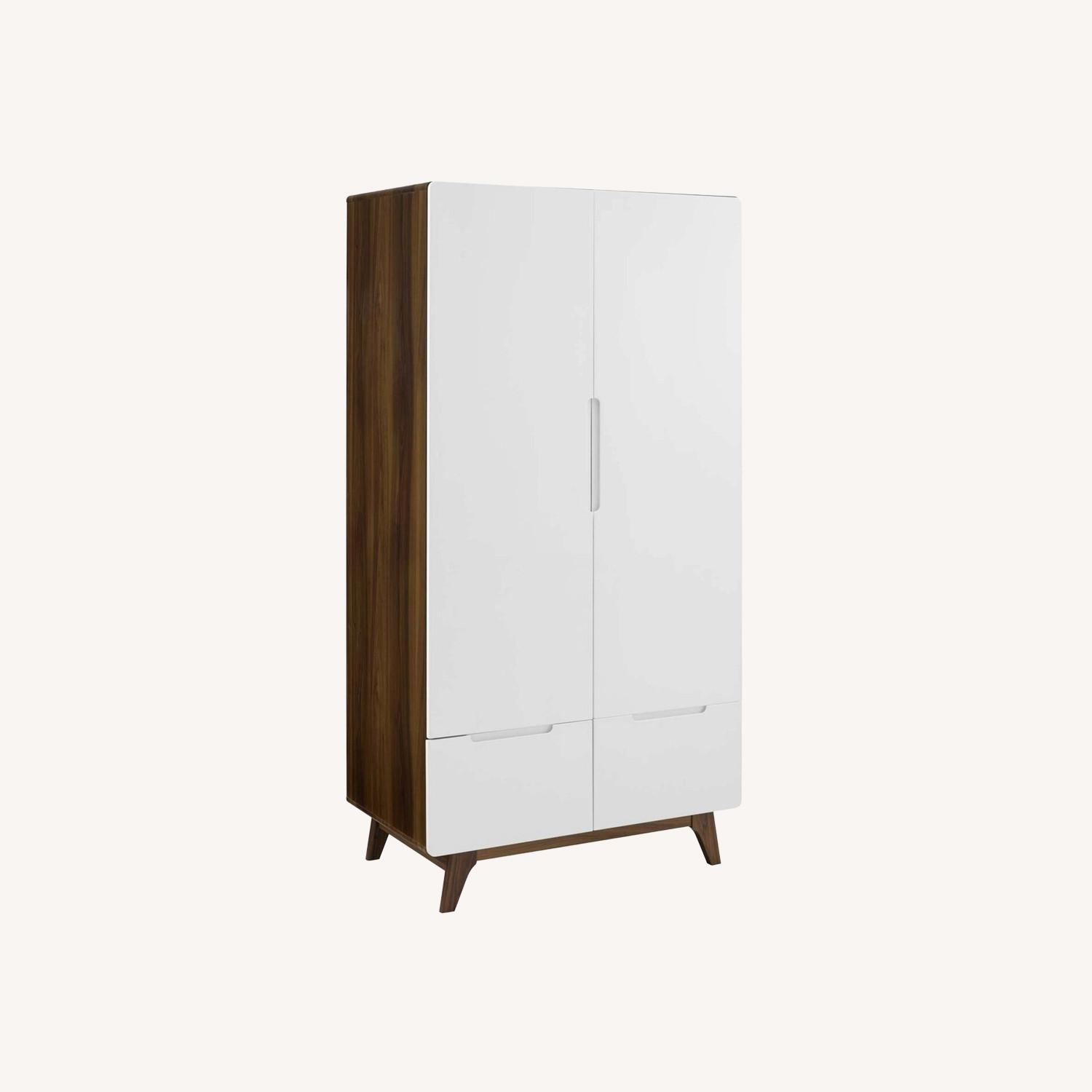 Seller's Notes:Mid-Century Modern Wardrobe Cabinet – Walnut & White (Great Condition)