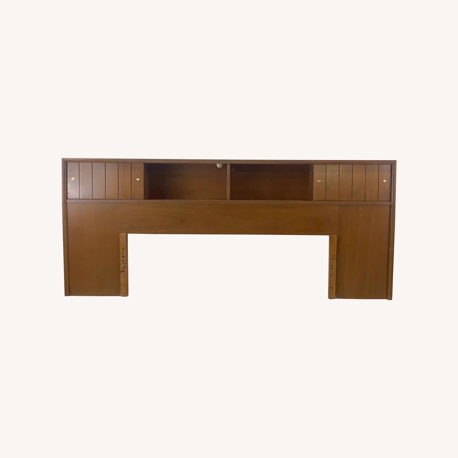 Seller's Notes:Transform your bedroom with this vintage modern Kroehler storage headboard, a versatile piece that encapsulates the essence of mid-century design. At 80 inches wide, it's crafted with the flexibility to accommodate both full and king-size beds. This headboard, featuring sliding doors and ample storage space, marries functionality with timeless style. Kroehler, a name synonymous with mid-century quality, brings you a piece that reflects the durability and design excellence of vintage furniture. Opting for this headboard not only enhances your space with a retro touch but also aligns with eco-friendly living. Vintage furniture reduces environmental impact, supports sustainable choices, and often retains or appreciates in value over time. Whether you're a mid-century aficionado or simply seeking to add a unique element to your bedroom, this storage headboard offers a perfect blend of practicality and style. It's more than a piece of furniture; it's a sustainable investment in quality design. Invest in this vintage Kroehler storage headboard and bring home a piece that's steeped in history, exuding the charm and quality of mid-century craftsmanship. It's not just a headboard; it's a statement of timeless elegance and eco-conscious living. Matching highboy, lowboy, and nightstands also available, contact seller for details. Dimensions: 80.25w 10d 34h Condition: age appropriate wear, vintage finish worn, scuffs/scratches, edge wear, discoloration, veneer chips, vintage wiring needs replacement, additional hardware needed to attach, see photos.