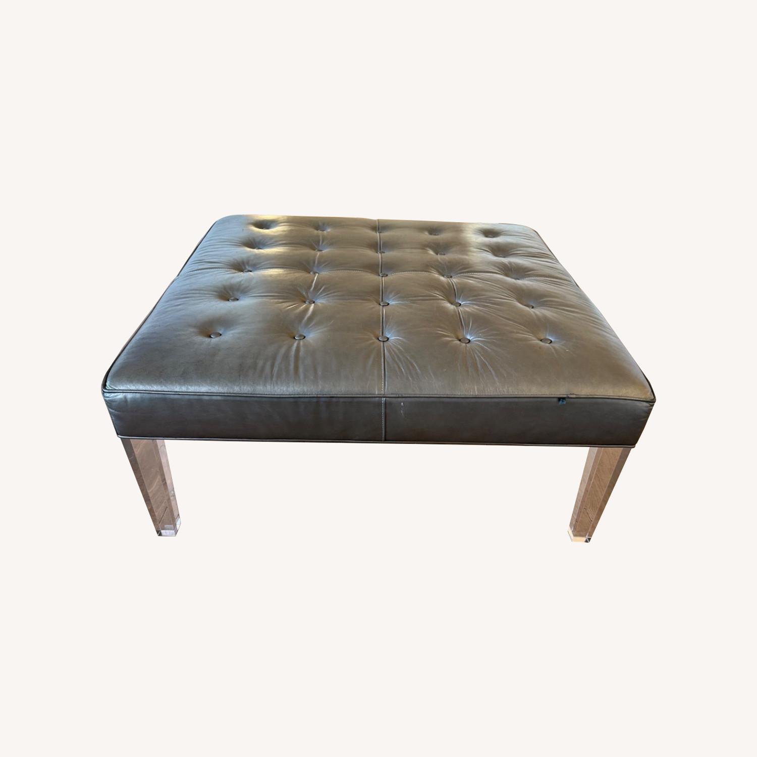 Seller's Notes:Beautiful light grey leather Michell Gold/Bob Williams ottoman. The leather has a slight sheen, and together with the plexiglass legs, the piece has a lot of life. It was perfect as an ottoman/coffee table in our city apartment. We took very good care of it and it looks great. Unfortunately we are moving and it won't fit in our new apartment.