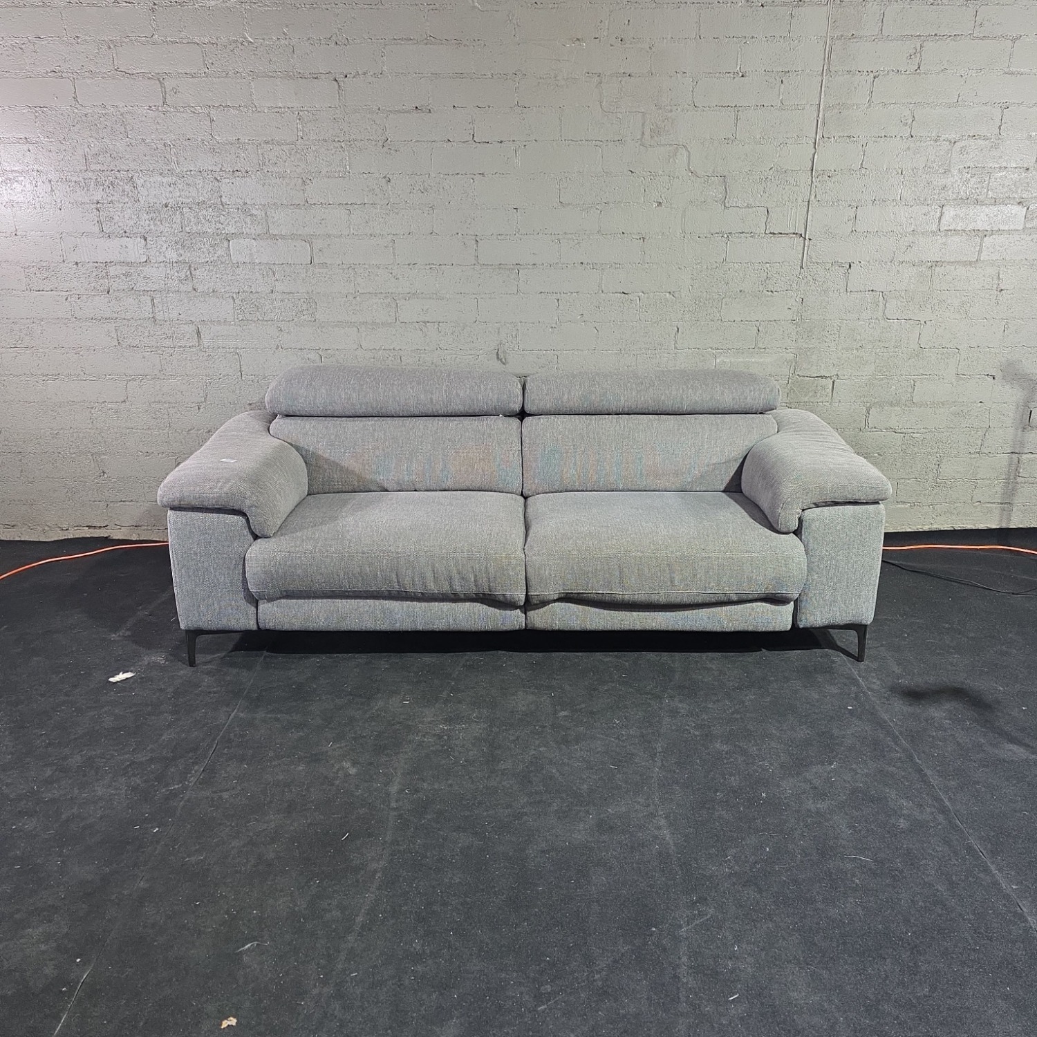 Seller's Notes:This stylish 3-seat sofa features soft gray fabric and plush cushions for comfortable seating. The wide armrests and supportive backrests make it perfect for relaxing or entertaining guests. The clean, modern design fits easily into any living room decor. Sofa is in great condition and ready for your home.
