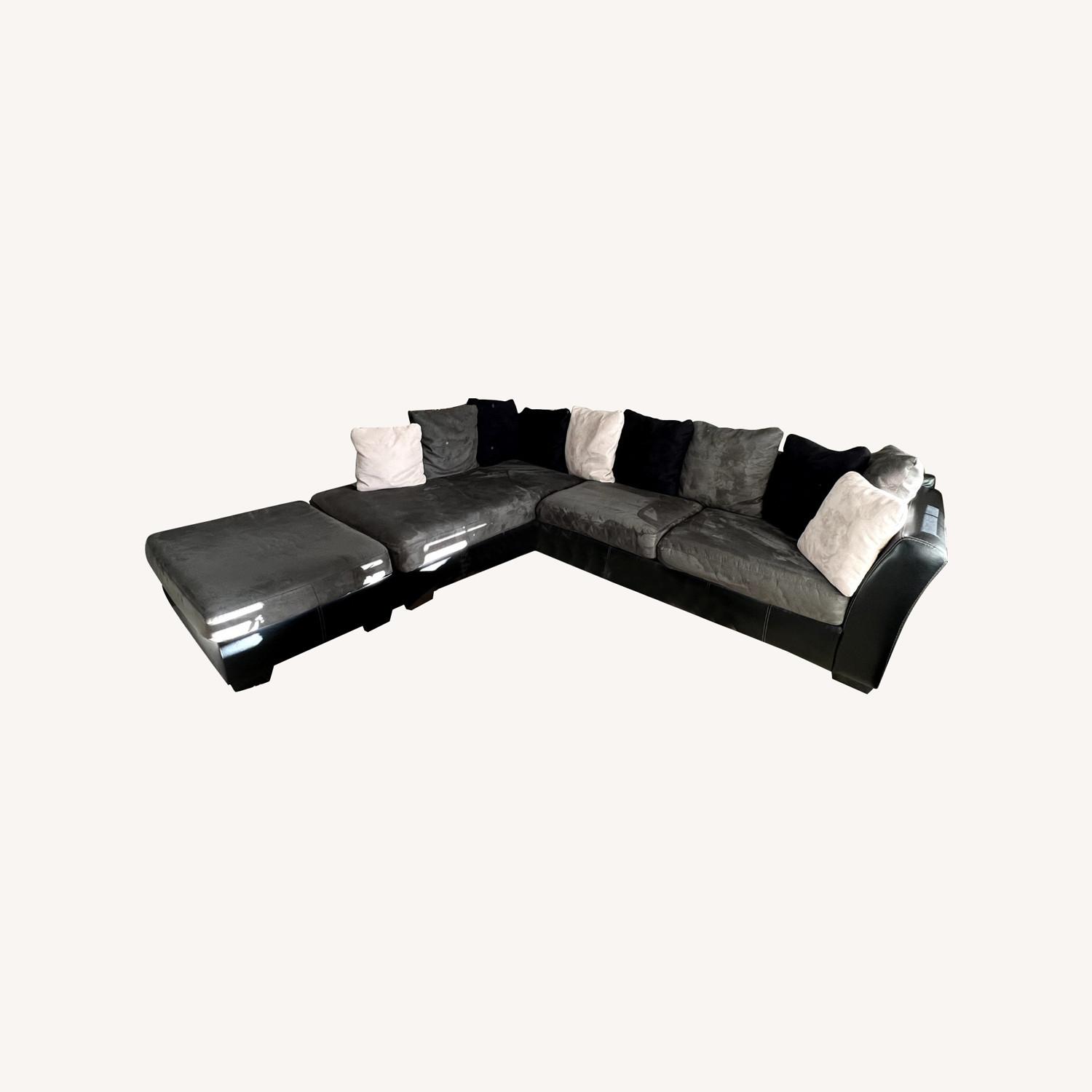 Seller's Notes:This spacious sectional sofa with ottoman was purchased from a local furniture retailer and has been lightly used for 6 years. It’s been very well cared for: no food, no pets, and a professional cleaning team dusts and wipes it every two weeks. Pillow covers are removable and washable, and we wash them occasionally to keep everything fresh. The fabric has a natural nap similar to velvet, which creates light-and-dark patterns depending on how it’s brushed. What may look like marks in photos are actually just the texture of the fabric — the sofa is clean and well maintained. A unique feature of this sofa is its flexibility. It can be used as one large sectional or separated into two smaller sofas to create different layouts, such as a conversational setup with two pieces facing each other (see last photo). Dimensions: • As a full sectional (without ottoman): 118”L × 73”D × 32”H • Ottoman: 30”L × 42”D × 17.5”H Separated into two sofas: • Piece 1: 76”L × 36”D × 32”H • Piece 2 (with ottoman): 103”L × 42”D × 32”H The build quality is excellent, comparable to well-known brands like West Elm, Pottery Barn, and Crate & Barrel. Comfortable, durable, and versatile — perfect for family living rooms, entertaining, or cozy movie nights.