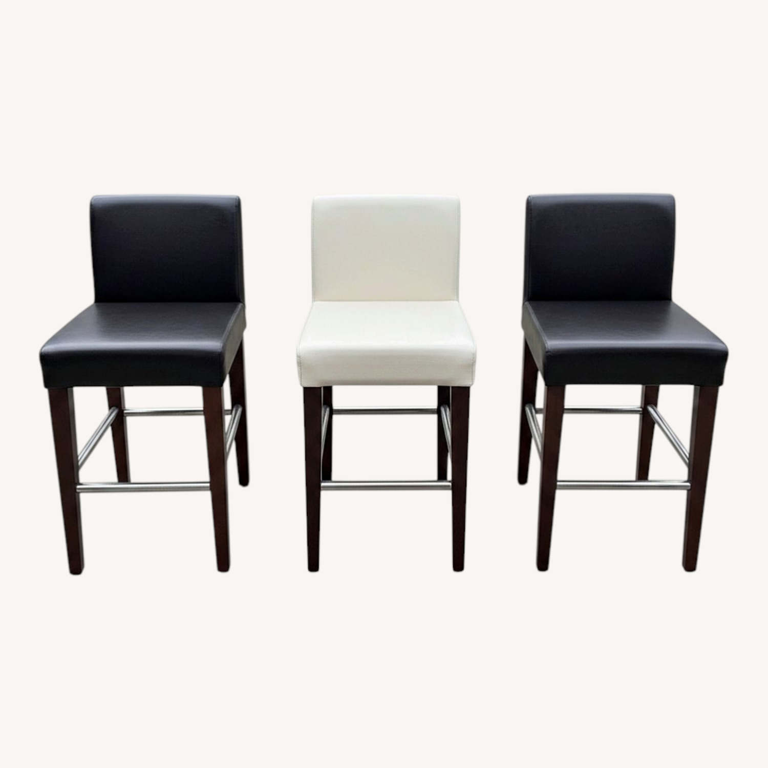 Seller's Notes:Set of 3 modern Italian leather counter stools These stools feature a clean, contemporary European design with a low back profile, upholstered leather seats, and solid wood legs with a rich espresso finish. Polished chrome footrests add both durability and a refined touch. The minimalist silhouette makes them a great fit for modern, transitional, or high-end kitchen spaces. Sold as a set of individually. Details: Measures: Back: 33.5" H, seat 23.5" H, 16" W x 20" D Purchased from Kasala (premium modern furniture retailer in Seattle) Italian contemporary design - made in Italy Leather upholstery (two espresso brown one light beige) Solid wood legs with chrome footrests Comfortable low-back support Counter height (approx. 24–26” seat height) Condition: Excellent condition. Light, normal wear consistent with use. Structurally solid and comfortable. No scratches or blemishes of any kind.