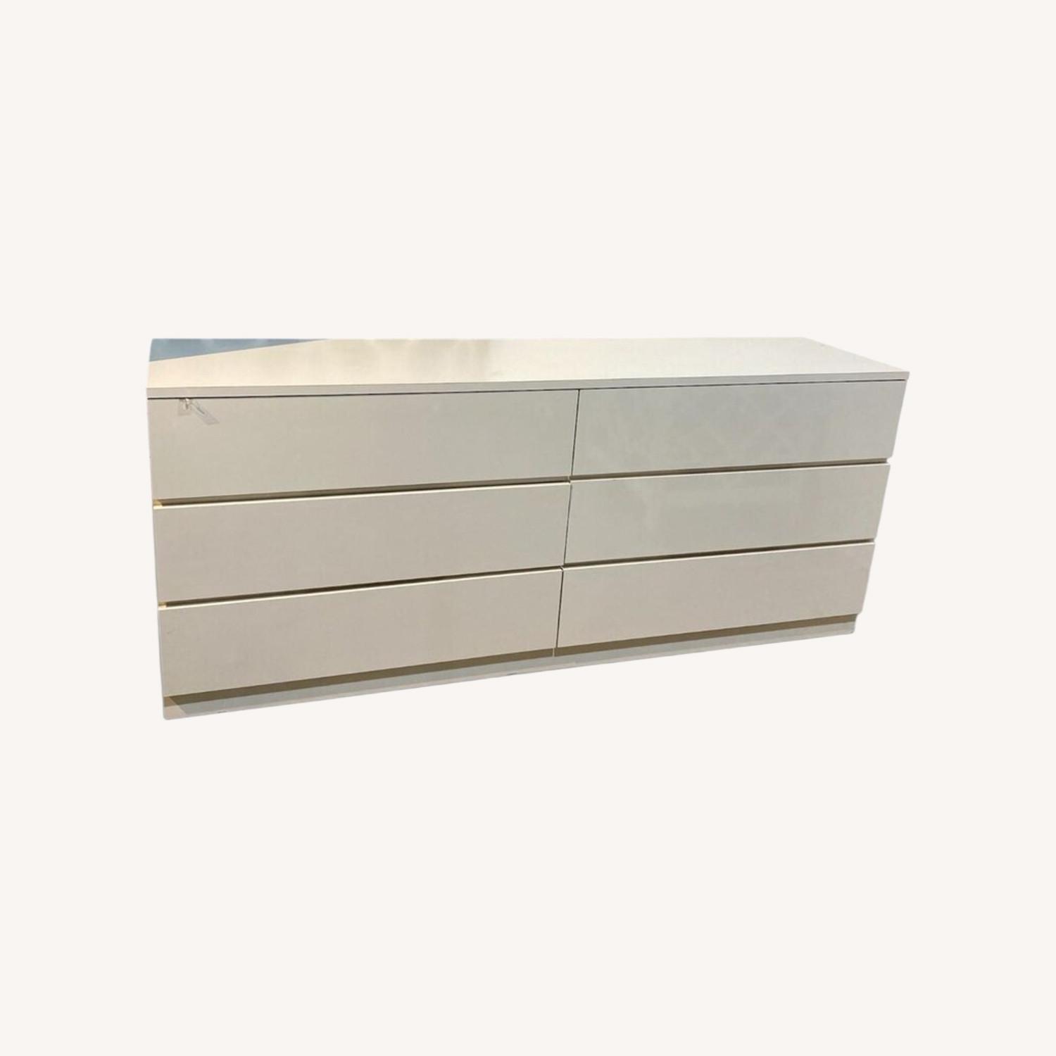 Seller's Notes:Sleek and refined, this Modern Minimalist 6-Drawer Buffet in white brings a fresh, contemporary feel to any space. Its clean-lined silhouette and crisp finish create a light, airy presence that complements modern, minimalist, and Scandinavian-inspired interiors. Designed with simplicity in mind, the smooth drawer fronts and streamlined profile emphasize form and function without unnecessary detail. Six spacious drawers provide ample storage for dining essentials, linens, or everyday items, keeping your space organized and clutter-free. Versatile and timeless, this white buffet works beautifully as a dining storage piece, credenza, or stylish accent in living areas.