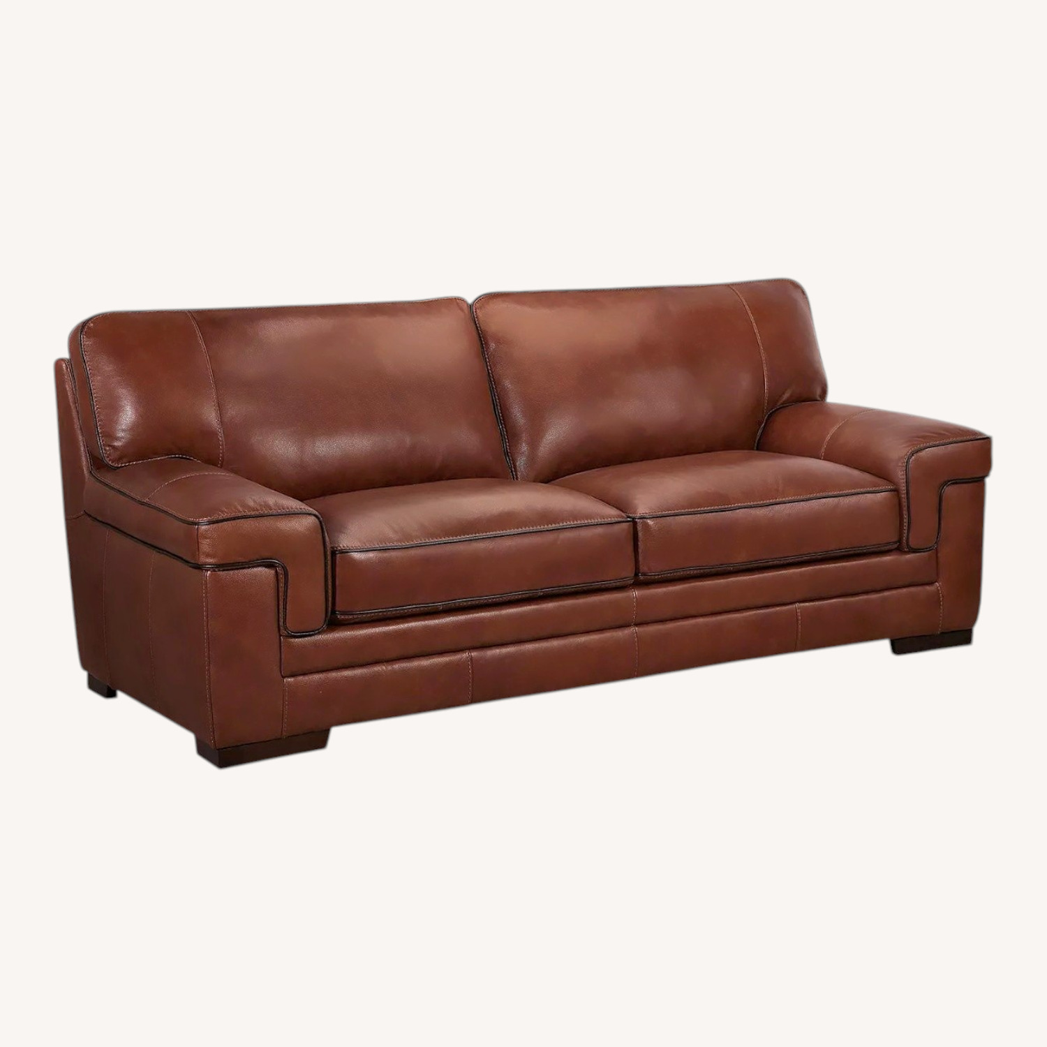 Seller's Notes:Myars 91” full leather sofa from Macys. Used but excellent condition. Original listing $2,949 from Macys. Must arrange pickup