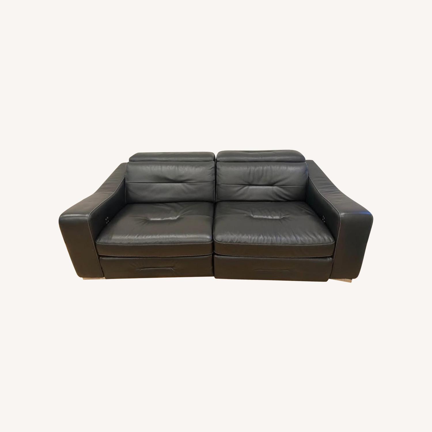 Seller's Notes:Natuzzi Italian Black Leather Power Recliner Sofa Luxury Meets Comfort Up for sale is a beautiful, authentic Natuzzi leather sofa featuring dual power recliners and adjustable headrests. This piece combines sleek Italian design with incredible functionality, making it the perfect addition to a living room or home theater. Features & Condition Premium Leather: High-quality, supple black leather with elegant contrast stitching. Dual Power Recliners: Smooth motorized reclining action for both seats, allowing for custom comfort at the touch of a button. Adjustable Headrests: Manually adjustable headrests provide tailored neck support whether you are sitting upright or fully reclined. Condition: Excellent/Great condition. While we have owned it for 7 years, it was kept in a secondary seating area and was only occasionally used. The leather remains taut, and the motorized components work perfectly. Reason for Selling: We are moving and unfortunately cannot take this beautiful piece with us.