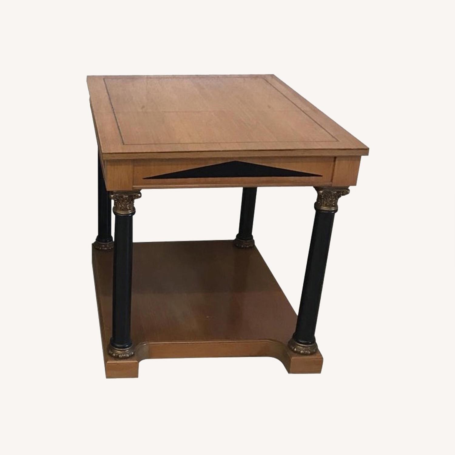 Seller's Notes:Condition: Vintage / Antique / Used, Original Condition Unaltered, Some Imperfections Excellent - Minor wear consistent with age and history Description: Great pair of neoclassical end tables that are Greek in style with very "Parthenon" like features and Roman columns. These would go with so many styles. Great condition with just minor scuffs and scratches noted in photos. Not sure of age and no maker markings other than the words "French Market" scribbled on the underside of each. The photo suggests the tops are more streaked than they really are. These are really in great condition. Styles: French, Italian, Neoclassical, Traditional Materials: Brass, Metal, Wood