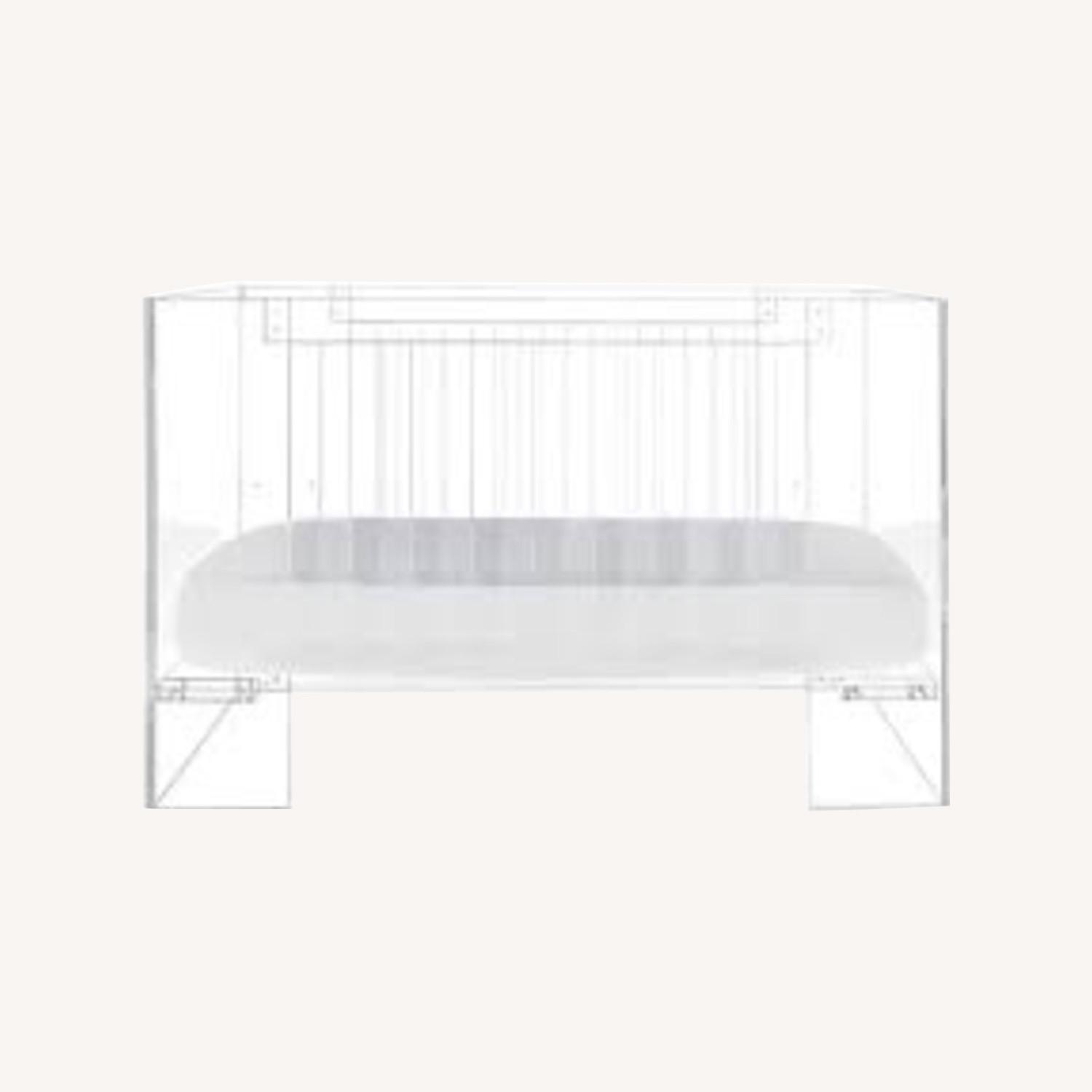 Seller's Notes:Stunning Nursery Works Vetro crib. Fully Acrylic, and in excellent condition. It was used at a trade show to display our bedding, so it’s practically new.