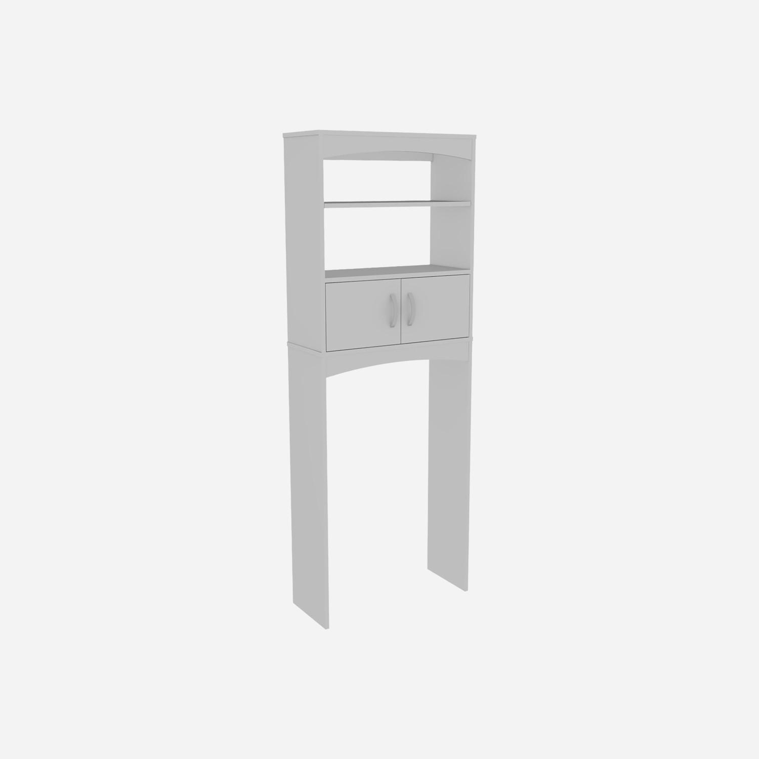 Seller's Notes:"The Valentia over-the-toilet cabinet is a perfect solution to a lack of storage space in your bathroom. Transform the usually wasted area above a toilet into valuable bathroom storage, it includes two open shelves and a closed two-door cabinet, designed with elegant white manufactured wood. Dimensions: Height: 64,96"" Width: 23,86” Depth: 9,84"" Furniture Type: Ready to assemble (full assembly required). Certifications: CARB phase II compliant – TSCA Title VI Compliant. Warranty: 1-year warranty coverage in wooden parts- 1-year warranty coverage in hardware pieces since its manufacturing date found in the lot number printed in the product box. Shipment details: Free shipping to the 48 contiguous states - delivery time: Between 2 and 5 days depending on the customer's location, season and weather factors. Other details: This product does not include decorative or background elements; Check that the box is in good condition, well packed and check with the help of the manual that the corresponding parts have been included; For more information regarding warranty, shipment details, cancellations, returns & replacement parts go to the bottom section of our website to learn more; Installation & Assembly Instructions included."