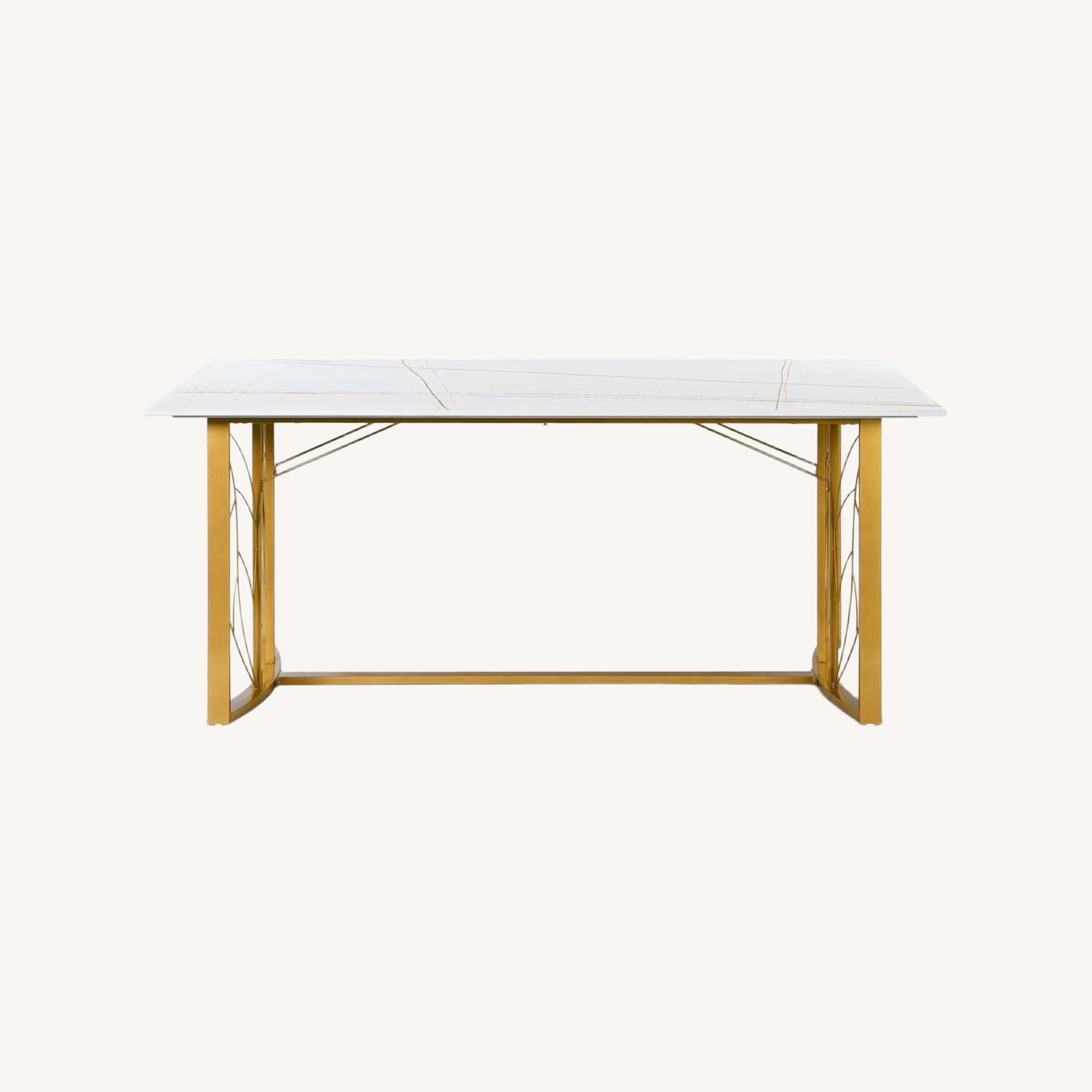 Seller's Notes:Indulge in Opulence with our Exquisite Gold Metal Base Granite Countertop Table: Choose between Black Laurent Gold or White Laurent Gold to Elevate your Dining Experience. Impeccably designed with exquisite gold leaf-shaped cutouts on both sides, the luxuriously lavish golden metal base adds an unparalleled touch of glamour to any dining space. With its spacious bottom area, this table not only provides a stunning centerpiece but also offers ample room for you to unwind and stretch your legs while enjoying your meals. Experience the pinnacle of extravagance with this remarkable addition to your dining room.