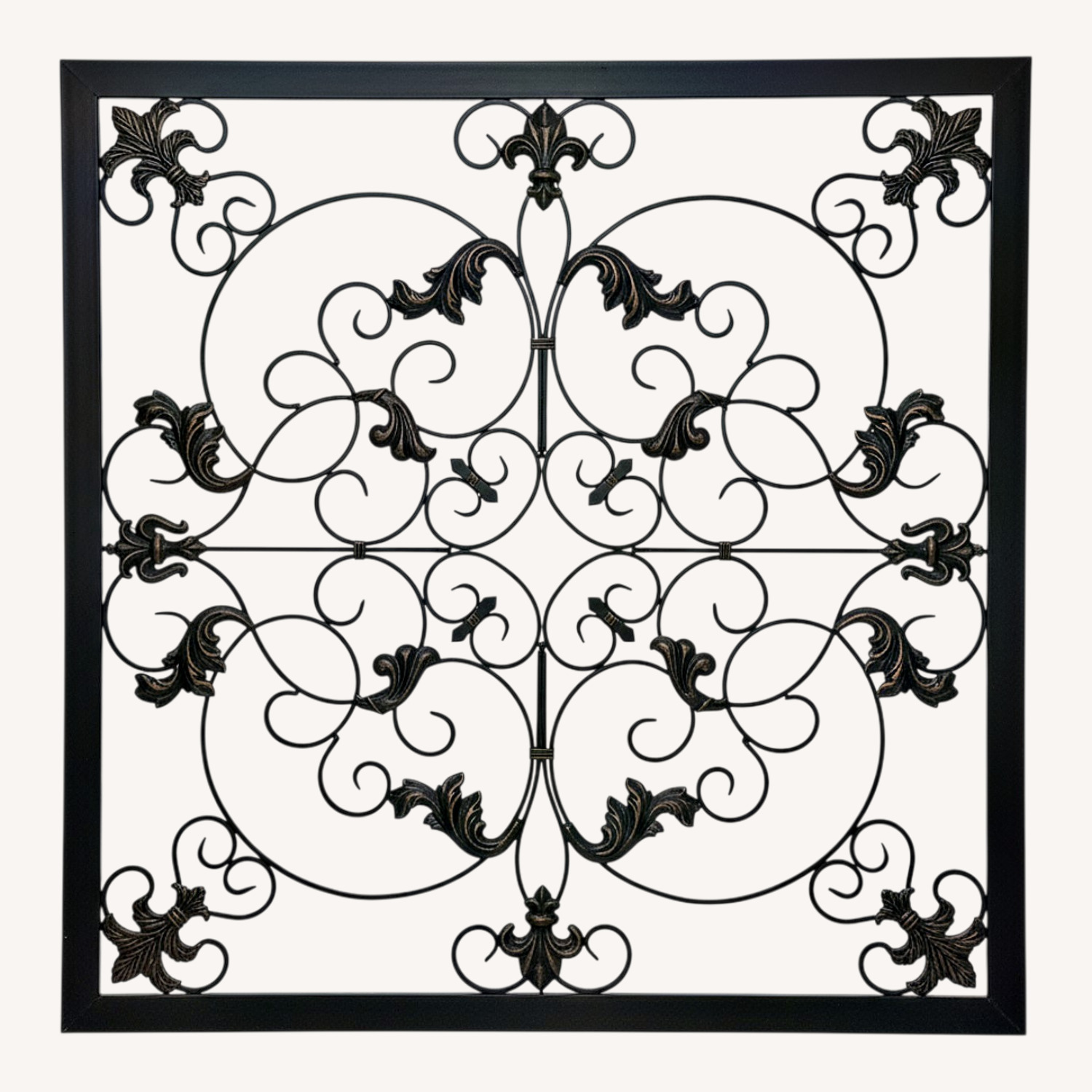 Seller's Notes:Beautiful wrought iron wall art in perfect condition. Intricate design and attention to detail. Can be used indoors or outdoors. Would love to keep but we are remodeling.