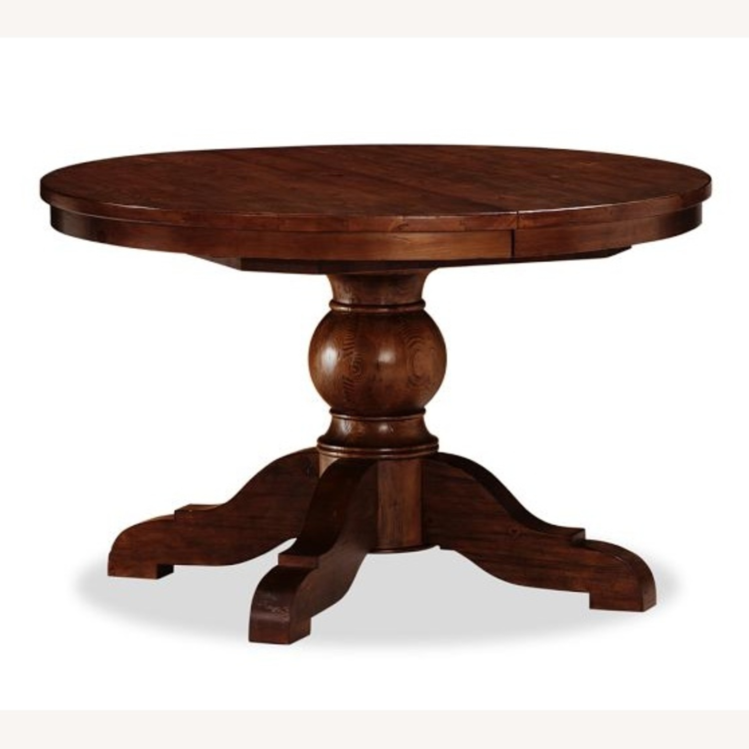 Seller's Notes:Reminiscent of mid-19th-century English pine furniture, our Sumner Pedestal Table is great for entertaining. It maximizes legroom while putting every guest within easy conversation range. The set’s Aaron Chairs are crafted by skilled artisans, and feature a contoured seat and curved back for great comfort.