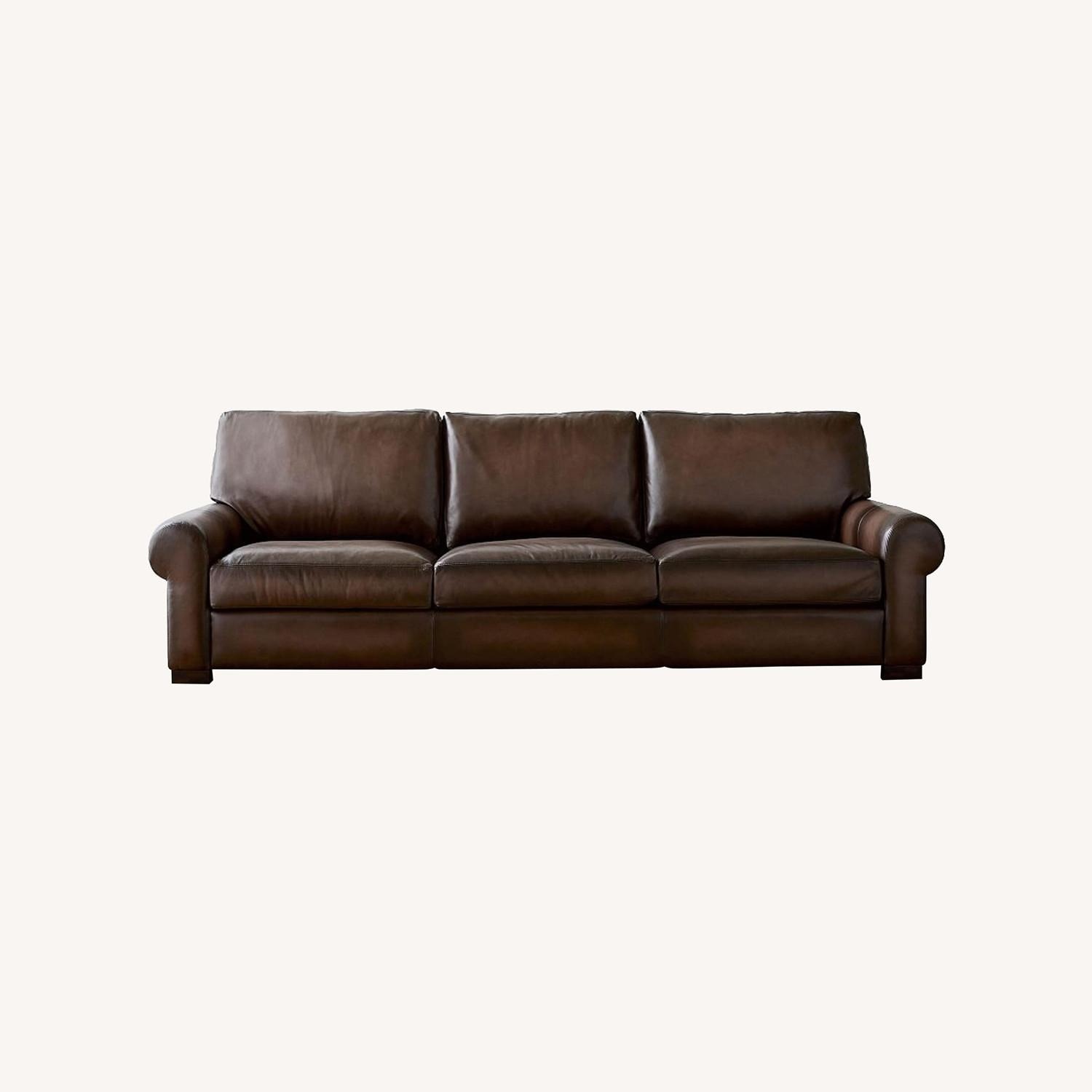 Pottery Barn Dark Brown Leather Sleeper Sofa - image-1