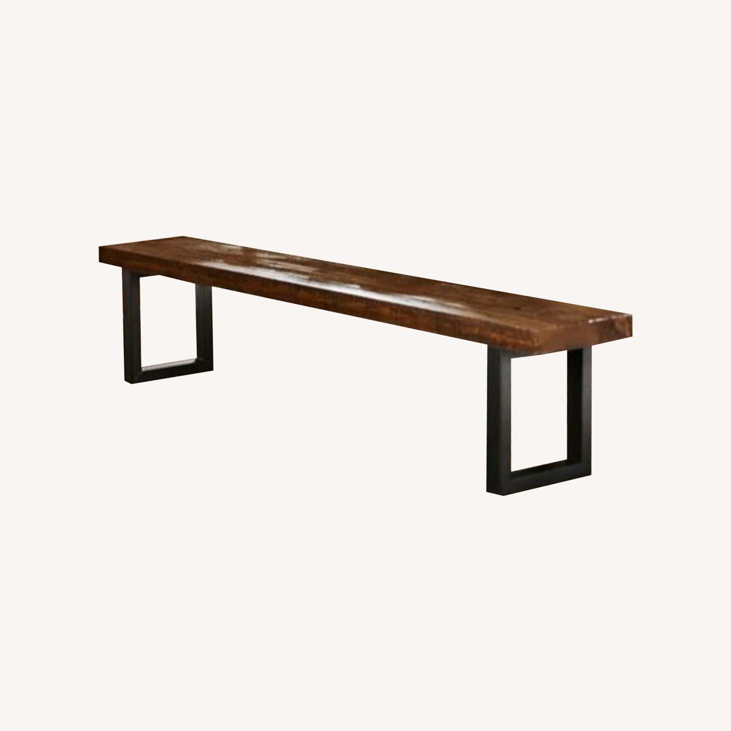 Seller's Notes:Like NEW! Used once!! We are moving and sadly have to say goodbye to this dining set. Barely used and in great condition, and it will only get better with time with the gorgeous reclaimed pine wood. Selling the Griffin dining table as well in the same collection. https://www.aptdeco.com/product/pottery-barn-griffin-reclaimed-pine-dining-table Industrial iron paired with reclaimed solid pine not only looks beautiful but also stands up to years of use. This bench’s thick top bears original saw marks and is hand planed for a rough-hewn appearance. Crafted of reclaimed solid pine. Crafted of pine, a gorgeous softwood with a closed grain pattern. Multistep finish is sealed with a protective lacquer for moisture resistance. Due to the nature of the reclaimed wood, slight variations inherent to salvaged materials will be visible, such as knots, saw marks and hairline cracks. Wrought-iron legs are welded to seat for structural integrity. 86" bench seats 4 people comfortably.