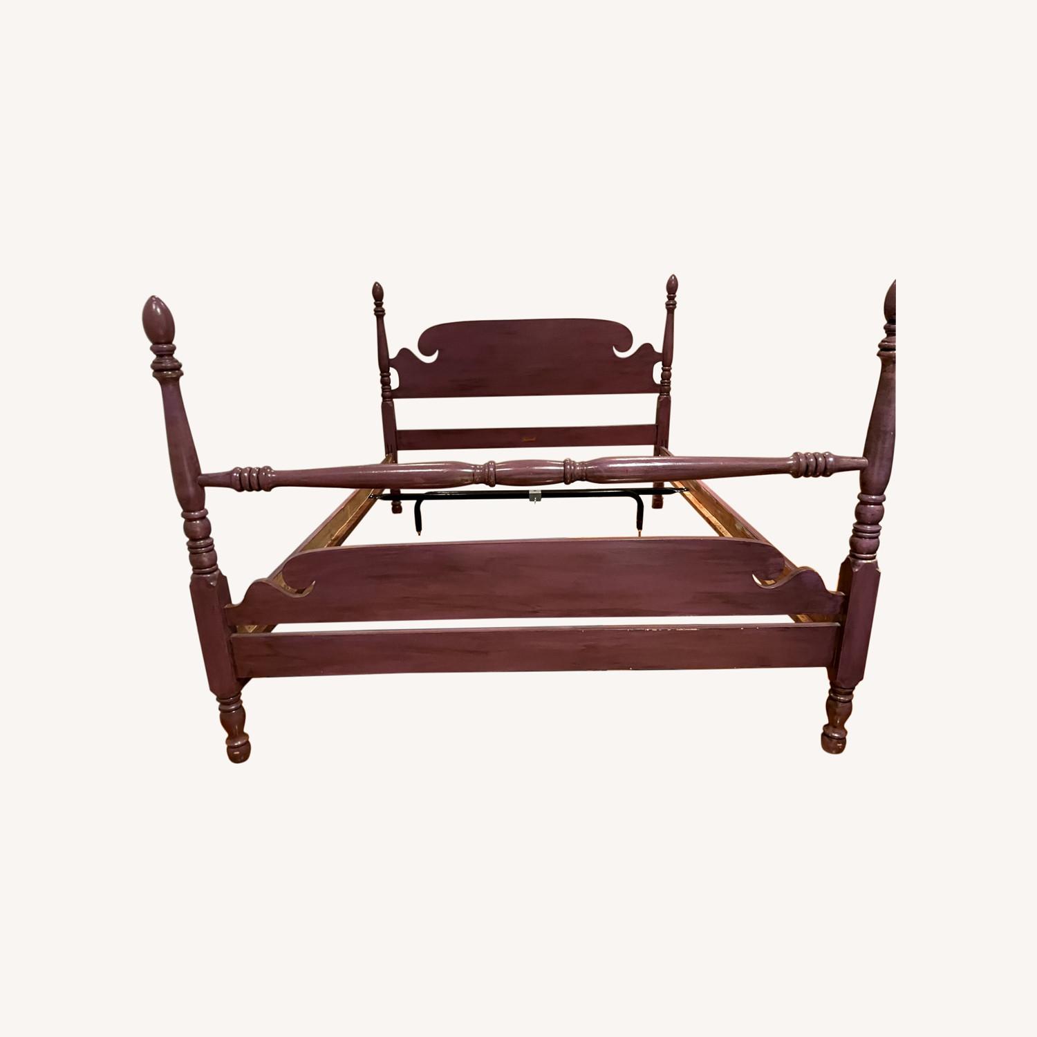 Seller's Notes:This is a full bed that has been in our family for many years. Made by the Van Stee Corp in Jamestown NY. The original slats on the base were replaced with a metal frame to help with noise. It has been refinished to purple with an antique finish.