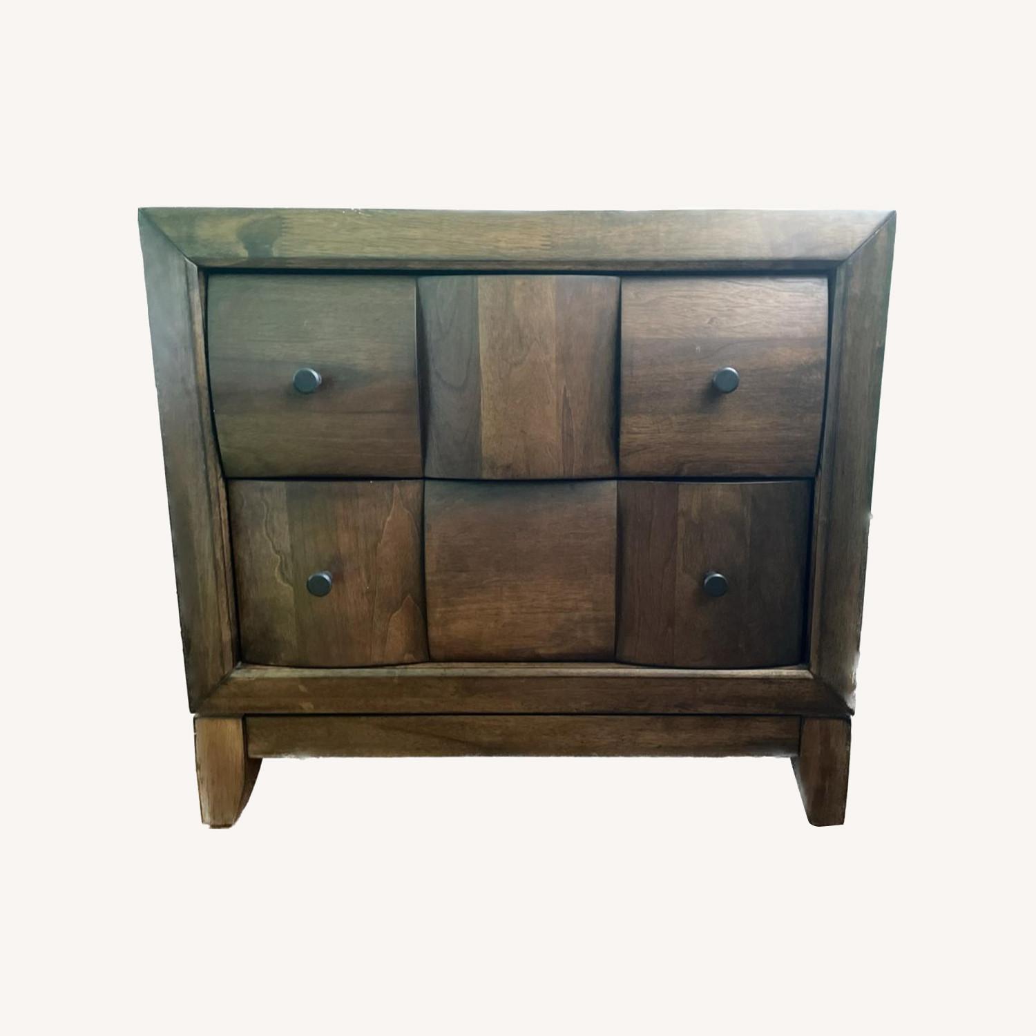 Seller's Notes:Moving Sale! Need to sell asap! This alluring Jovie nightstand from Raymour and Flanigan, showcases the natural characteristics of wood. From the bowed drawer fronts that form a basket-weave pattern to the felt lined top drawer. Simple and unique are the words that best describe this nightstand. It can be used in a rustic or modern style.