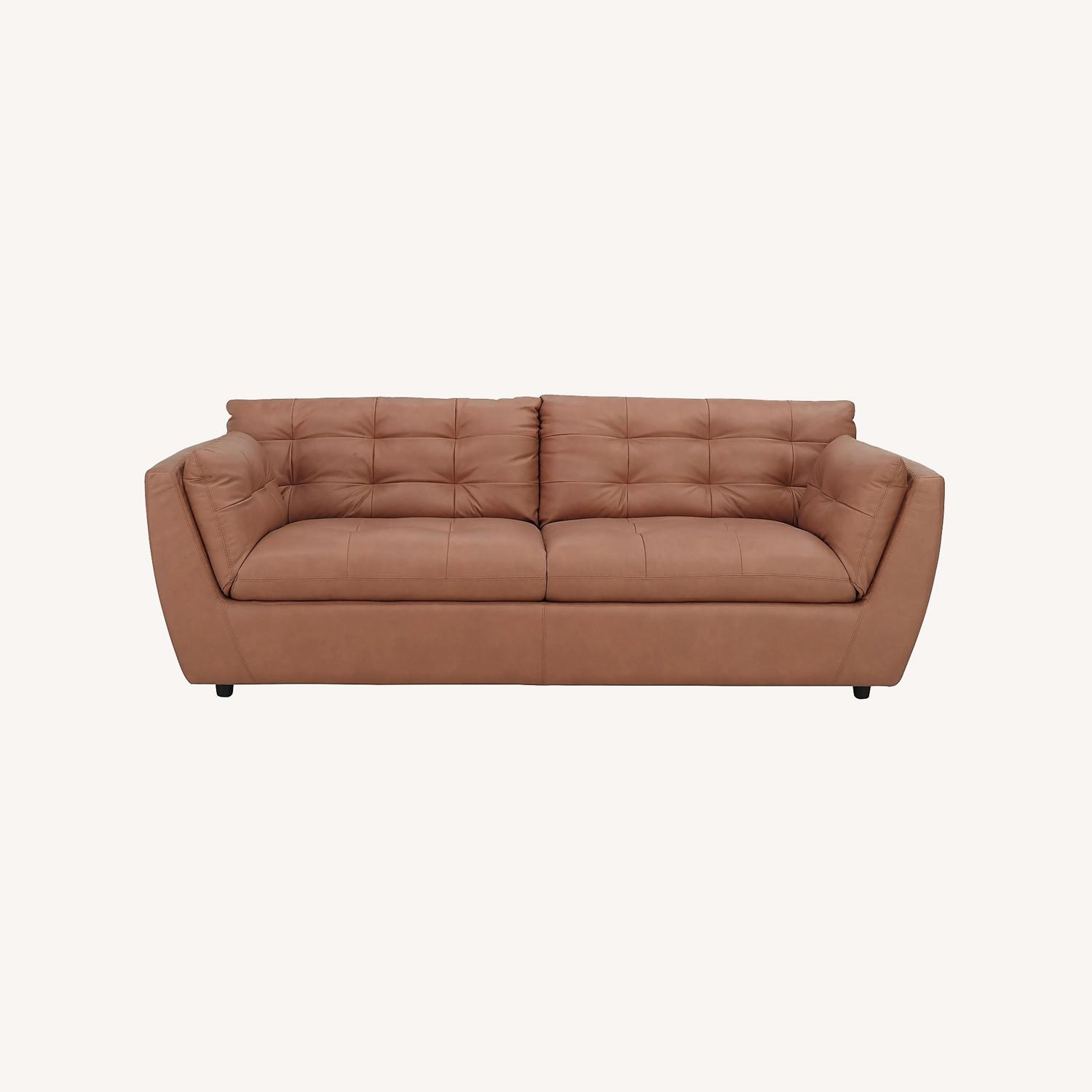 Seller's Notes:The Damar leather sofa offers the best in comfort and style. Its top-grain leather cushions and arms are so supple, while neatly tailored features like track arms and tufting catch the eye. Plus, its brown leather is a fashionable choice that will match any decor you choose.