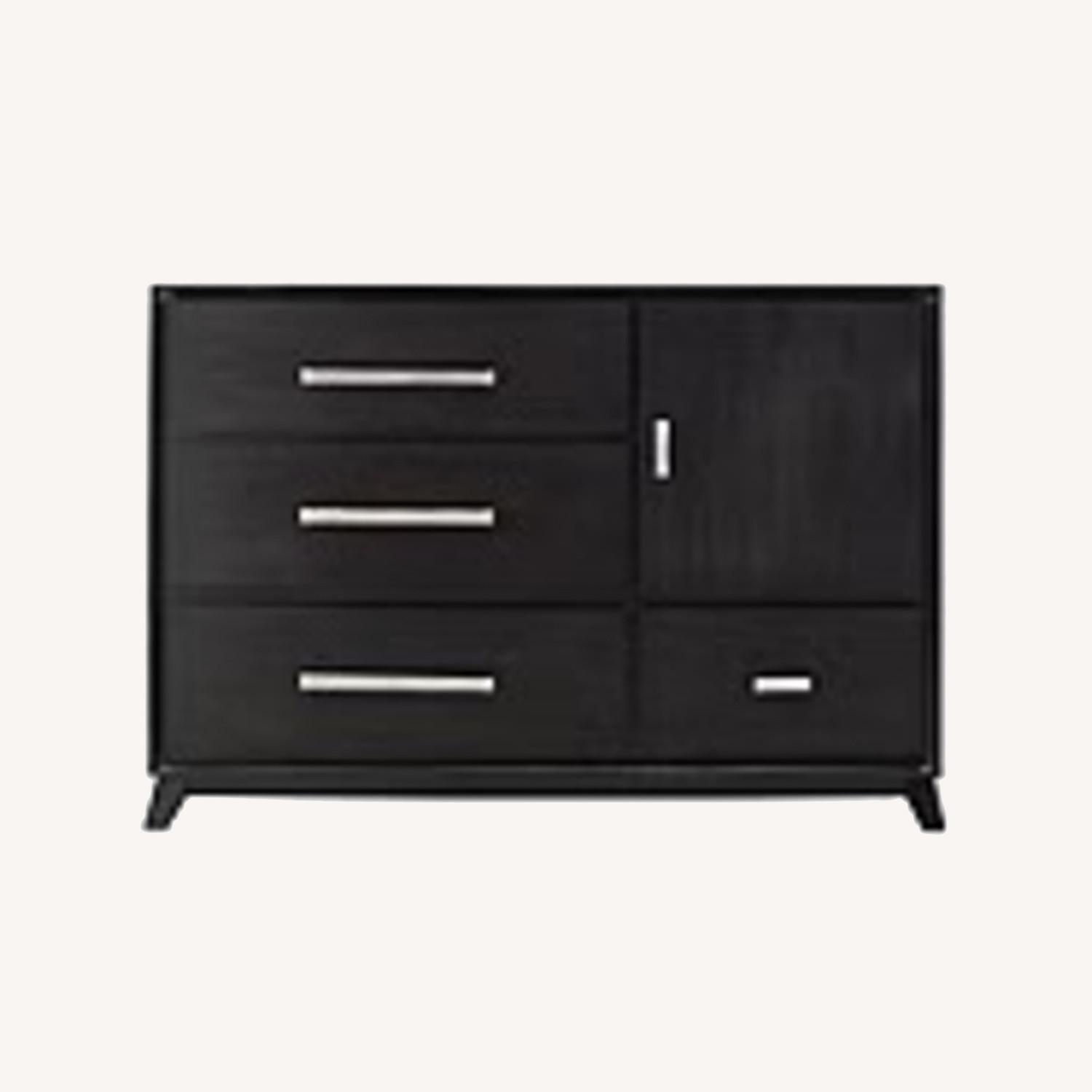 Seller's Notes:Dark brown dresser from Raymour & Flanigan with a clean, modern design and plenty of storage. Features multiple drawers and cabinet storage. Solid, well-made piece in good condition with normal wear from regular use. Great size for bedrooms or guest rooms. Dimensions: 58″ W × 18″ D × 40″ H.