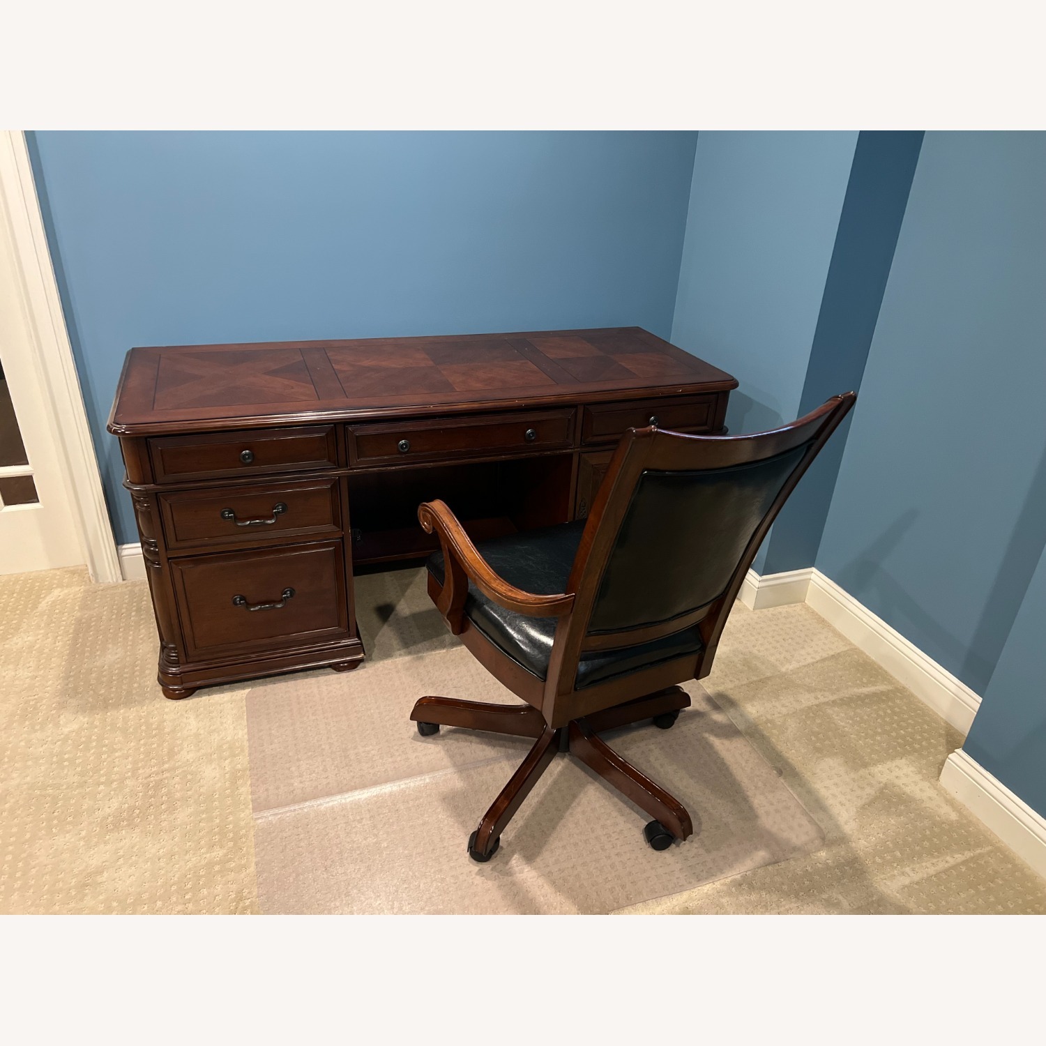 Seller's Notes:Raymour & Flanigan executive office desk for home office in near perfect condition, chair not included. No pickup necessary, we deliver!