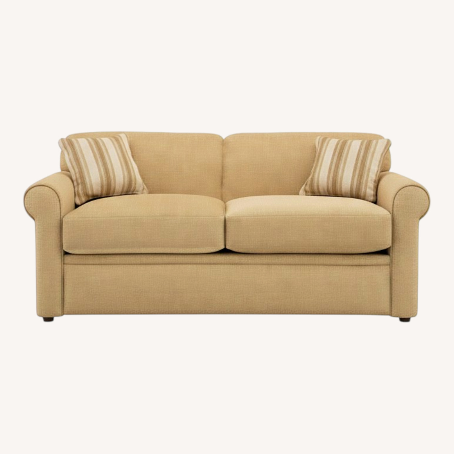 Seller's Notes:Sofa bed, not often used, was in our guest room. Have a dog he wasn’t often allowed in said guest room. Not exposed to cats. Full sized pullout bed. Selling ad that room is now my daughters room and need the space.
