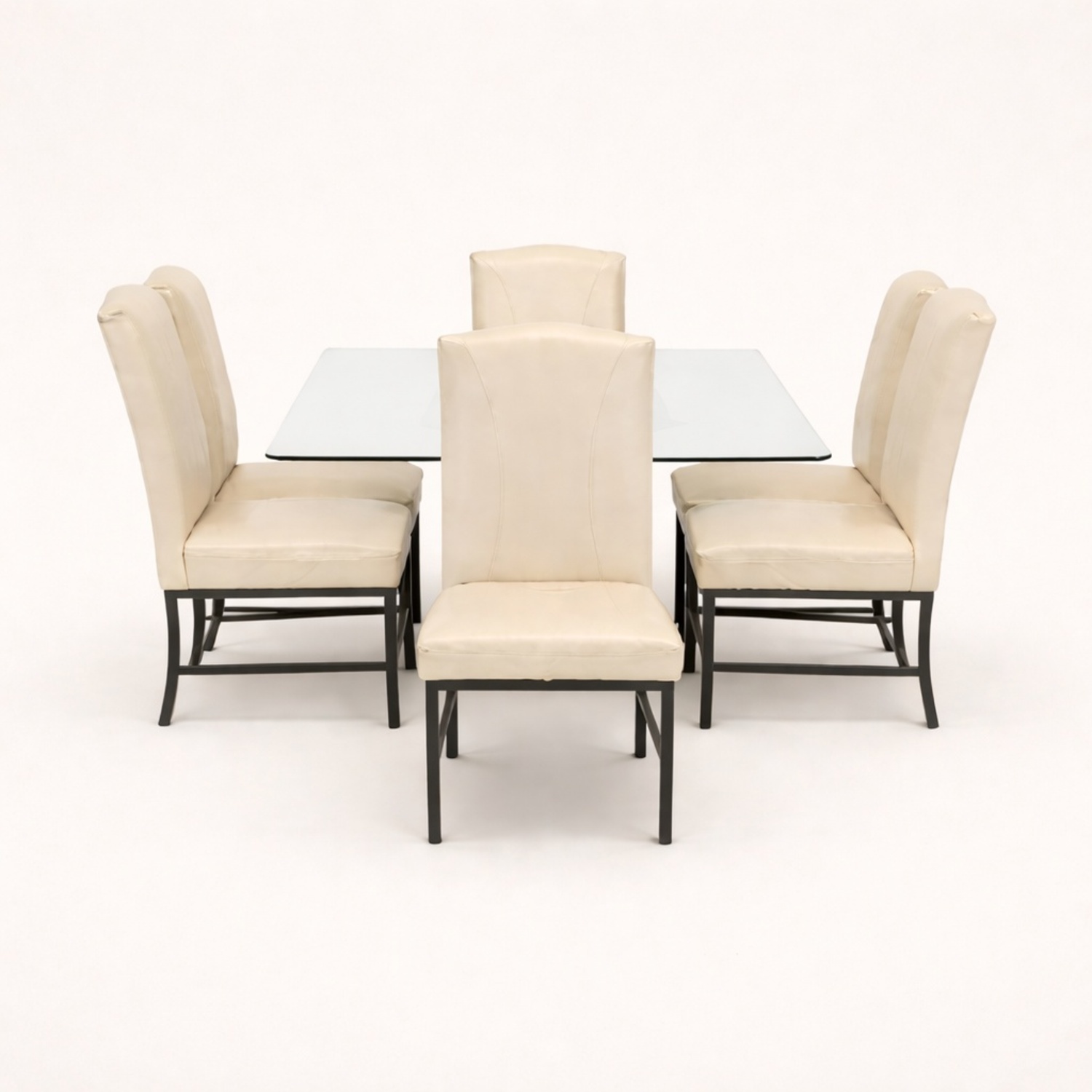 Seller's Notes:This dining set from Reflections Furniture features a clear glass table and six sturdy cream-colored chairs with metal legs. The set is perfect for family meals or entertaining guests, offering comfort and modern style to any dining room. Easy to clean and built to last, it's a great choice for both style and function.