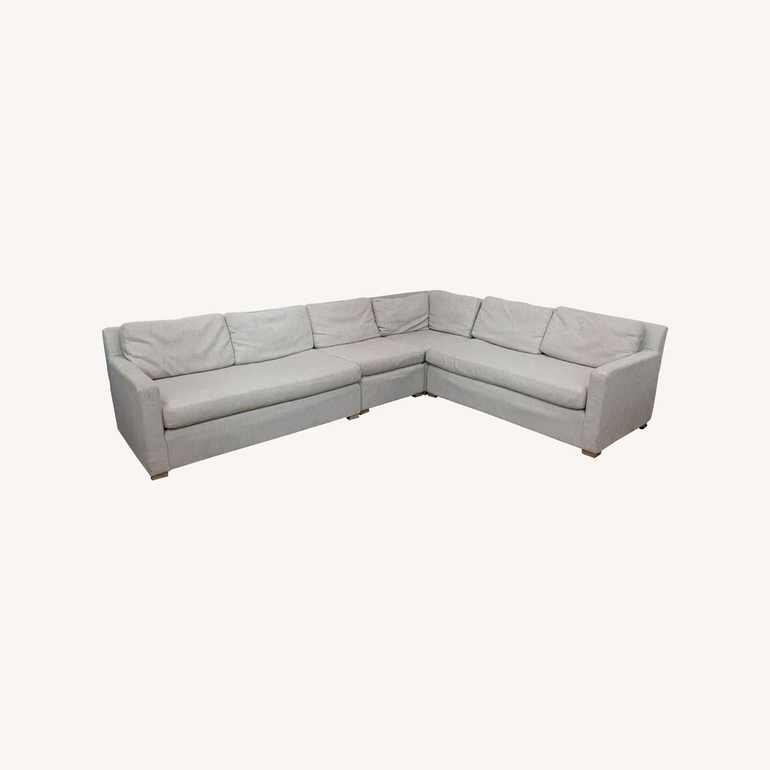 Seller's Notes:Upholstered L-Shaped sectional sofa with track arms.