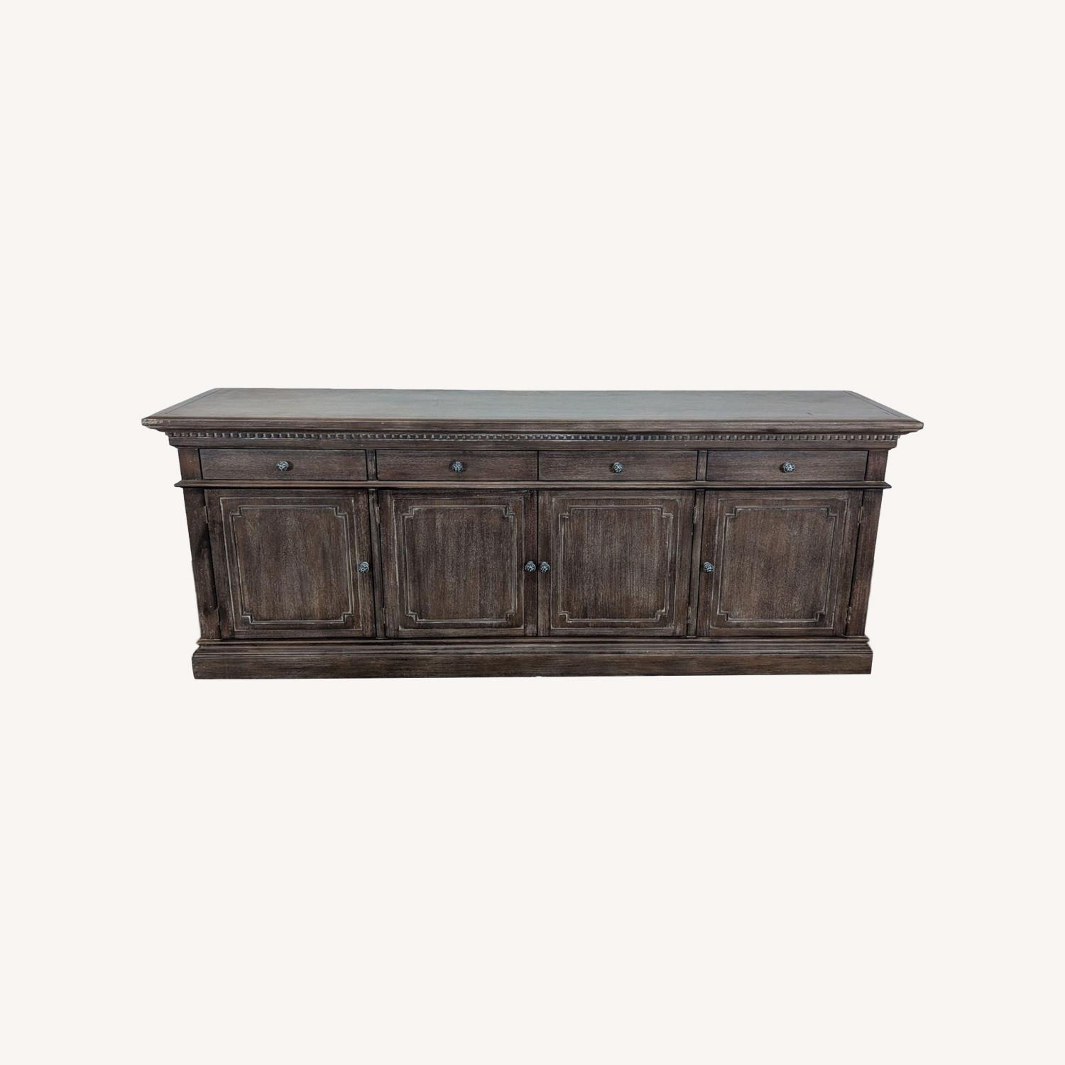 Seller's Notes:Evoking the architectural classicism of turn-of-the-century design, this piece is designed by Geoffrey Hawkes. It features hand-carved fluted cornices, corbels and dentil detailing, and is constructed of hardwood with mortise-and-tenon joinery.