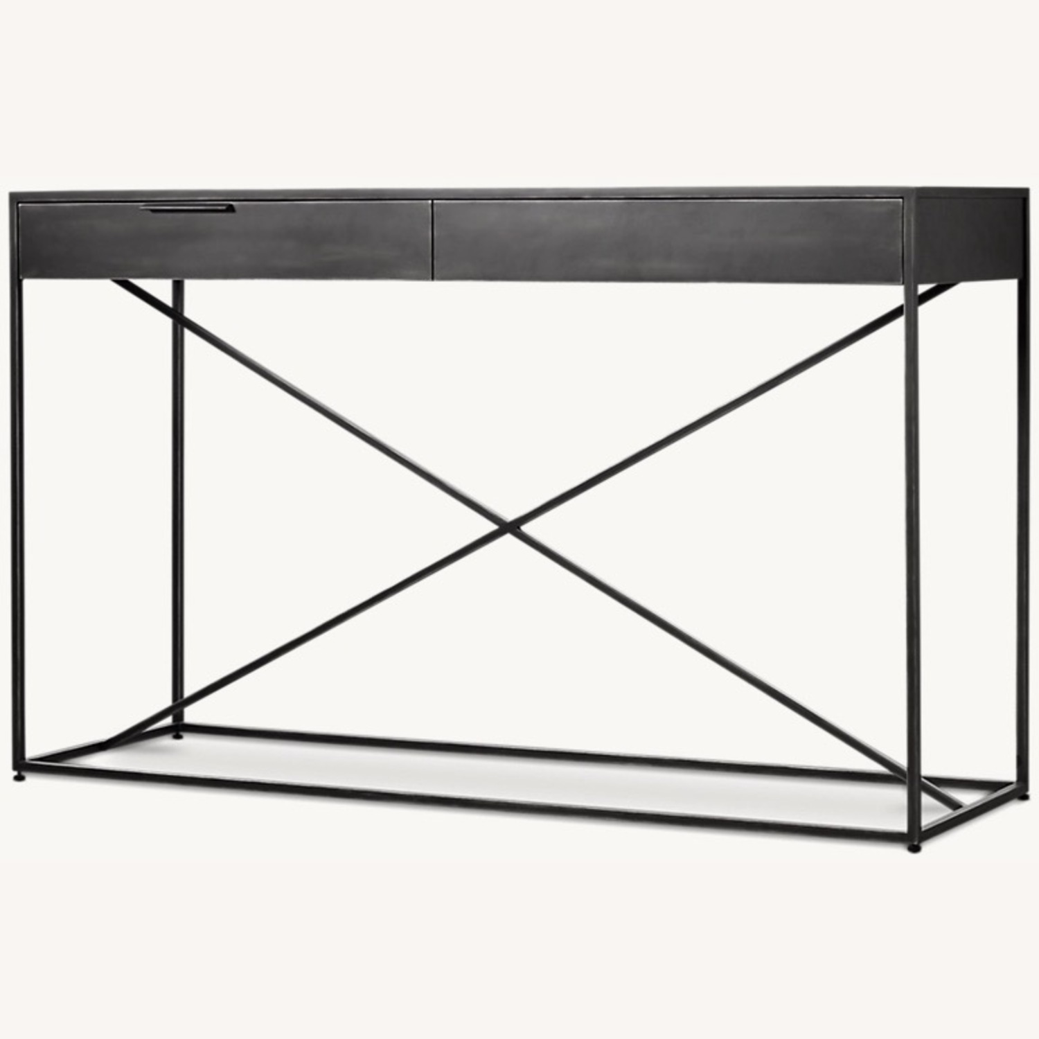 Seller's Notes:Angular, open metal frame with a soft iron finish