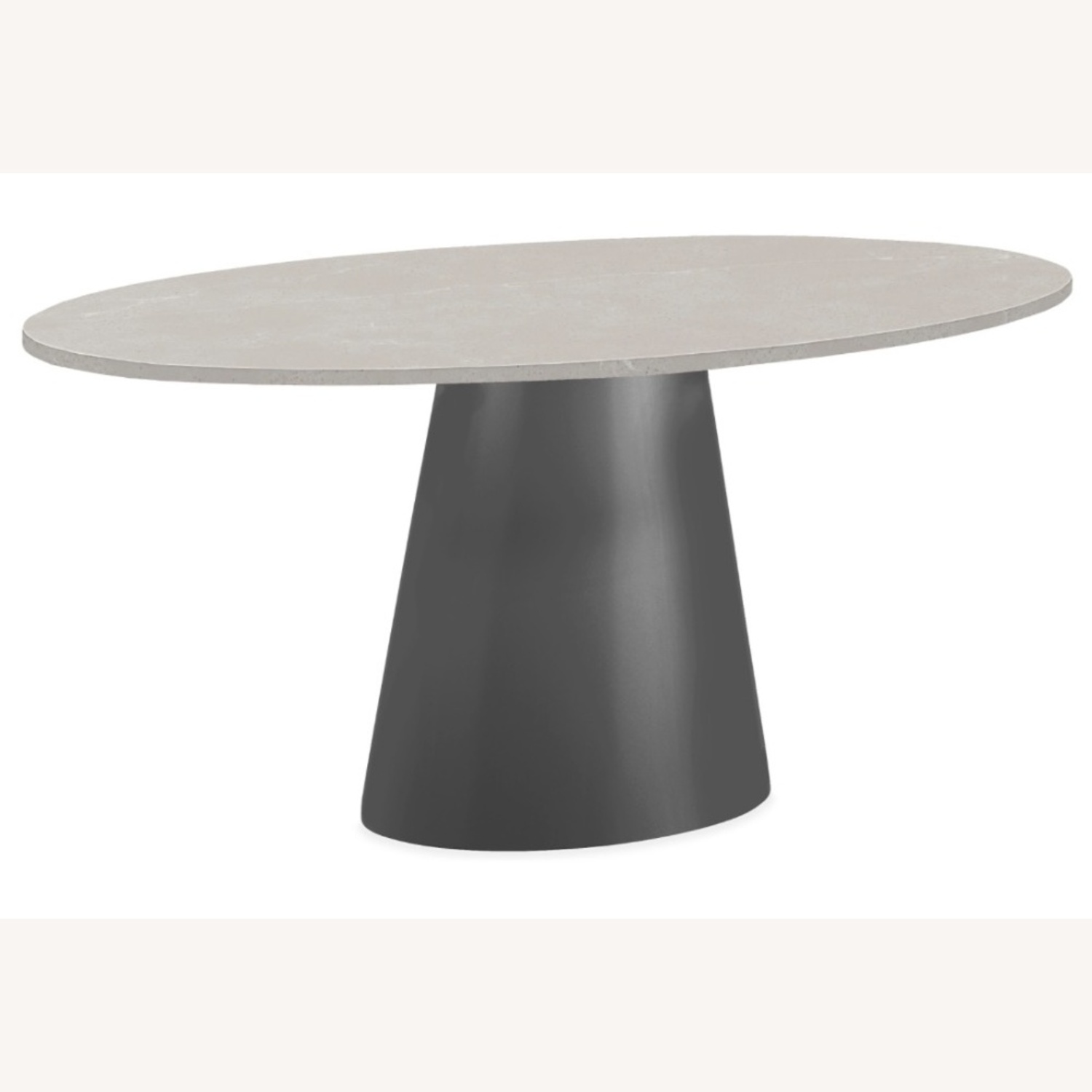 Seller's Notes:Beautiful modern dining table in mint condition from Room & Board’s Decker collection. Grey quartz top with soft white veining (reads like light marble) on a sculptural graphite black pedestal base. Timeless, solid, and very apartment-friendly.