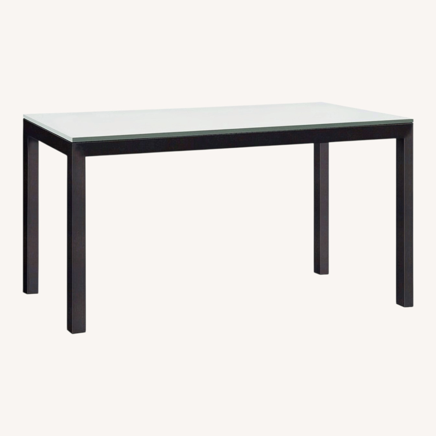 Seller's Notes:Selling room and board parsons meta desk w/ glass top. Will also sell/include chair and file cabinet.