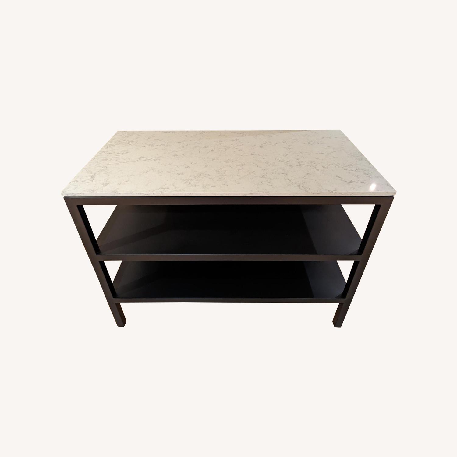Seller's Notes:Really wish I could hold onto this gorgeous piece, but it sadly doesn't fit in my new space. Although I listed it as a kitchen island, Room & Board also lists this as a counter table, as it would work for either purpose. The top is marbled white quartz, the base is powder-coated steel in graphite. NOTE: The quartz top is not attached to the base. It sits on top of the base on rubber stoppers. Be careful when moving.
