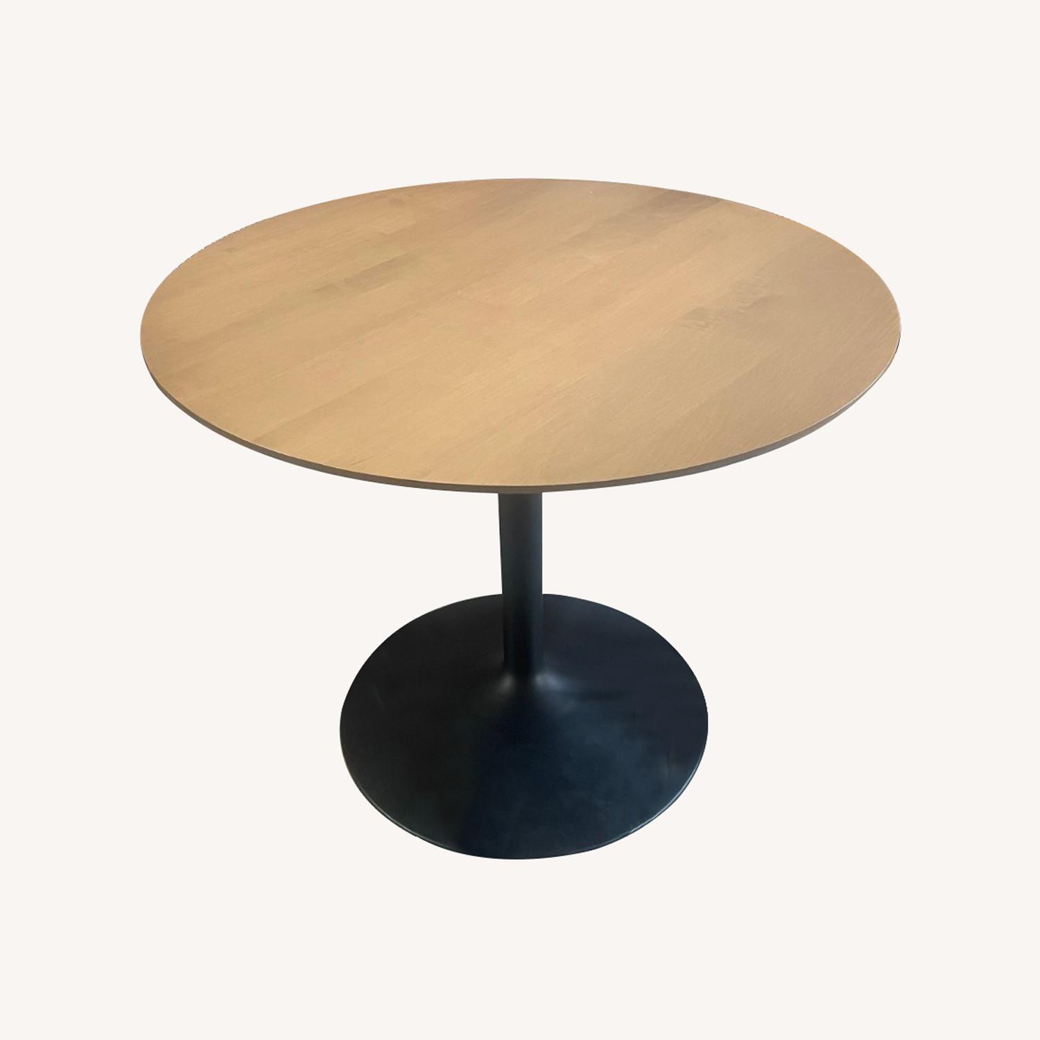 Seller's Notes:This is a like-new Room & Board custom made dining table. The round wood top is 36"; the metal/steel base is 25" round; and the height is 29". This is a gorgeous dining table (with just one very minor scratch - please see photos). Looking for a new home!