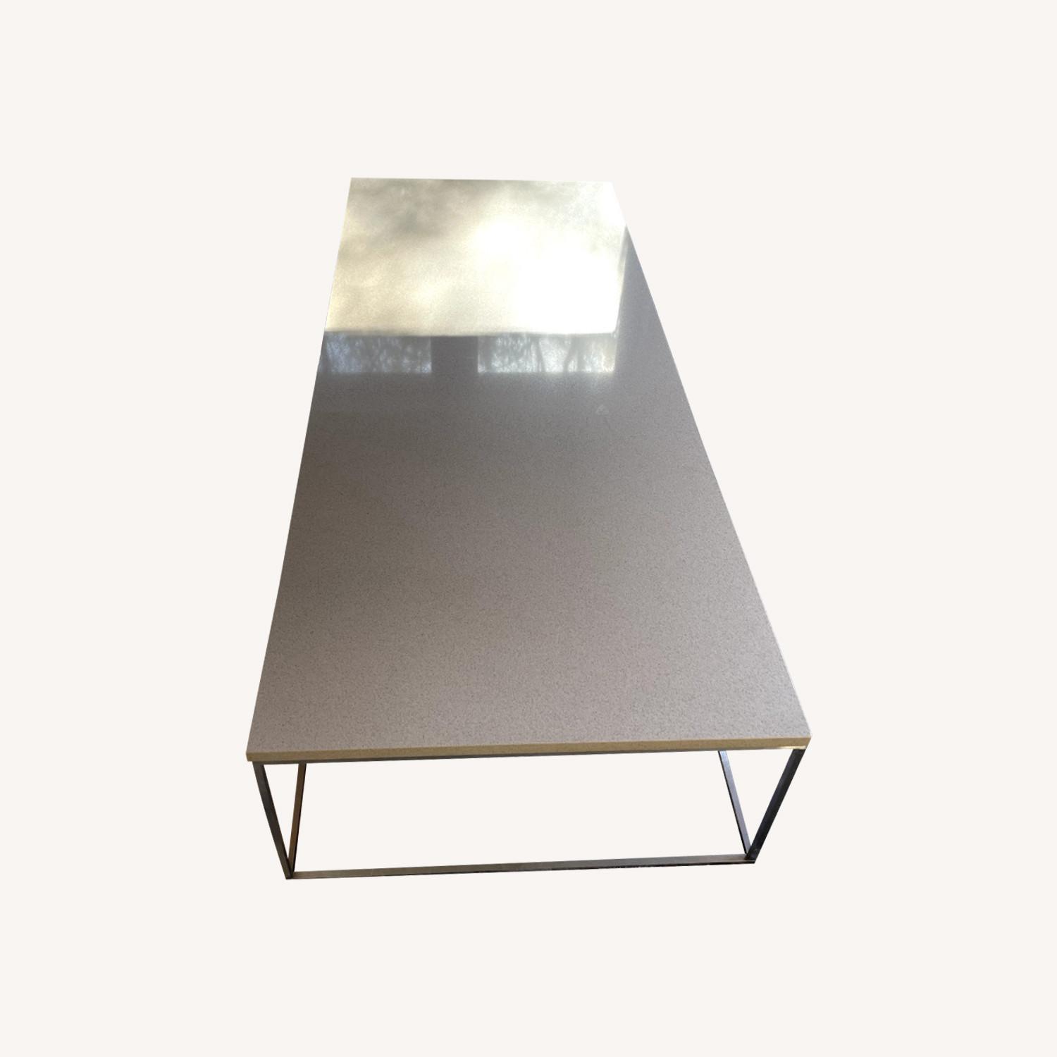 Seller's Notes:From the Room & Board Tyne Coffee Table collection. Taupe stone top and stainless steel base.