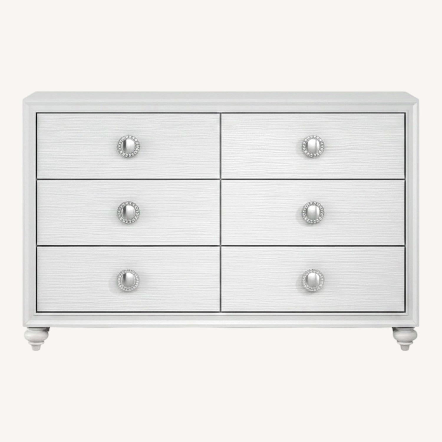 Seller's Notes:Evangeline white dresser. Slight discoloration on top. Very nice knobs. Solid wood.