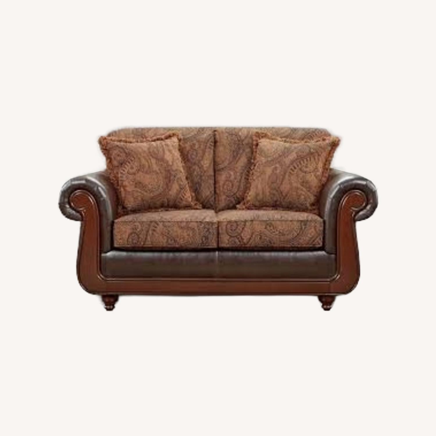 Seller's Notes:Loveseat good to excellent condition. Originally purchased from Rooms To Go (2014) and well cared for in a non-smoking home. Classic traditional style with dark brown leather (or leather-look) rolled arms and paisley fabric seat and back cushions. Clean, sturdy, and comfortable with a solid frame. DETAILS: • Traditional rolled-arm design • Dark brown leather/leather-look arms and trim • Paisley fabric seat & back cushions • Comfortable, supportive seating • From a non-smoking home • First floor location – only APPROXIMATE DIMENSIONS: • Loveseat: 72” W x 40” D