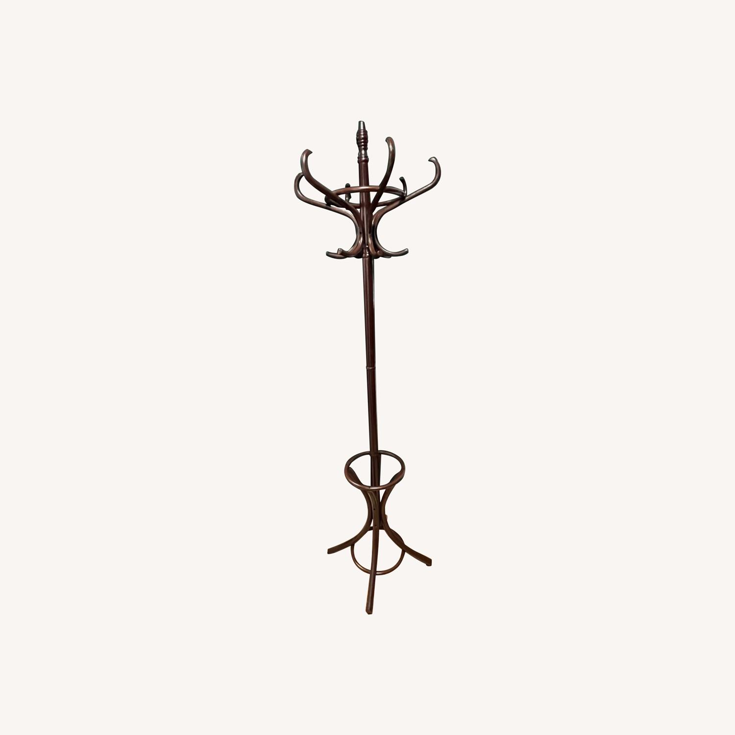 Seller's Notes:This coat rack needs a new home by July 30! Has two tiers of hooks and umbrella rack in the bottom of the design.