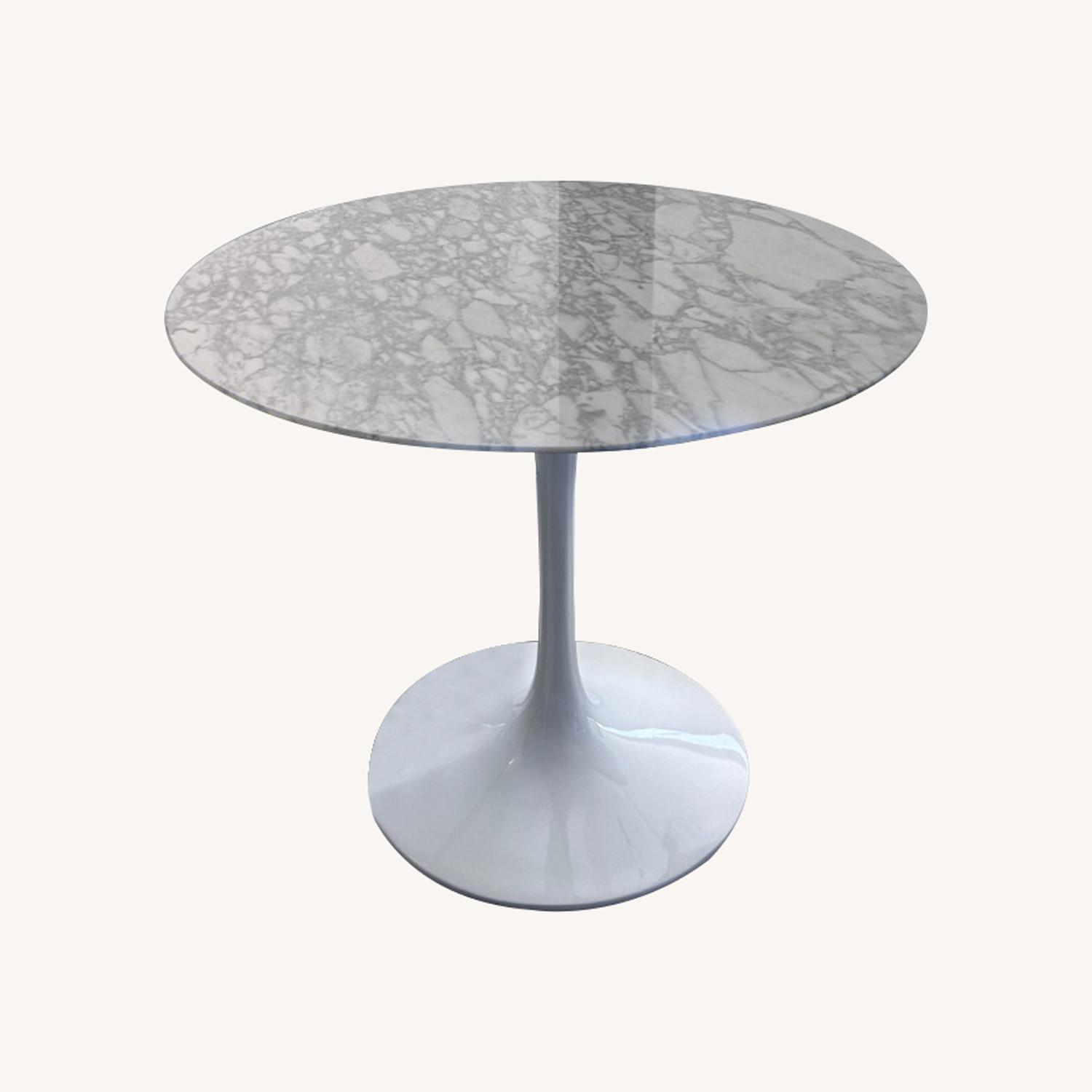 Seller's Notes:Our round marble dining table has a classic design that will perfectly complement any living area. Built with high-quality craftsmanship, this round table features natural Carrara style marble top polished to perfection and white cast aluminum base in glossy finish. The beautiful design of the base allows for unrestricted leg room completely around the table. Aside from being the perfect table for dining, the table is a welcome addition to a style-conscious boardroom or conference room. This classic marble dining table is truly timeless. It effortlessly adapts to any space it graces, so you can change up your theme or décor with peace of mind, knowing this table will fit flawlessly in any room you choose. Features: The table is a true classic Materials: Solid Carrara Marble from Italy, Cast Aluminum Base White aluminum base Round top High-quality craftsmanship Partial Assembly Required Many sizes available Please note: Every marble top is unique. Every marble has its own distinct pattern and veining.