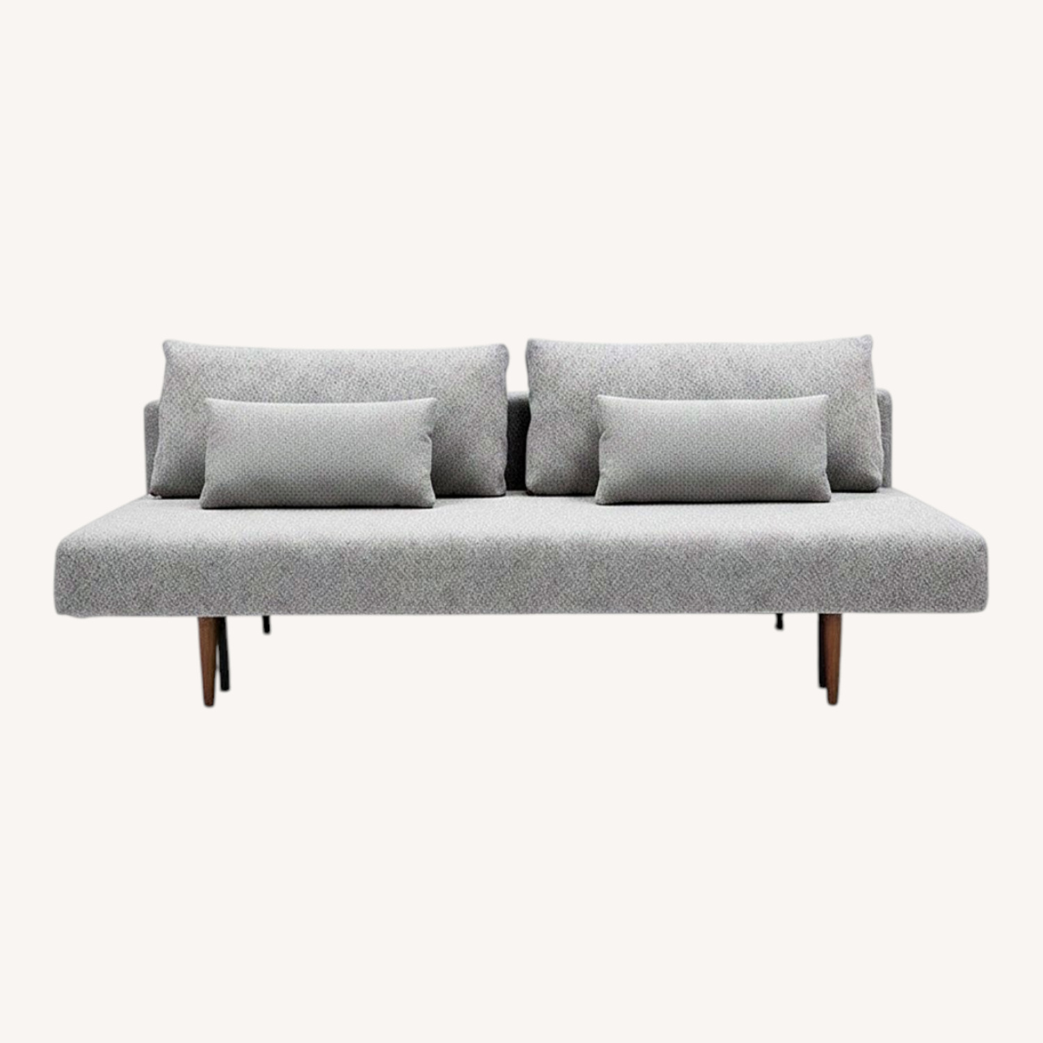 The Ella Convertible Sofa is the epitome of streamlined design. An homage to mid-century modern style, this sofa features walnut-stained tapered wooden legs and a clean, structured look. The armless design of this small-space-friendly frame makes it an ideal piece for minimalistic spaces that require thoughtful interior design, and it's also suited for those who enjoy fully stretching out without bumping into the arms of a sofa. Comfortable, supportive cushioning and a smooth, soft fabric make this piece ready for lounging and relaxing. Enjoy the dynamic design of this sofa all on its own, or pair with the Ella Ottoman to effortlessly extend your seating.