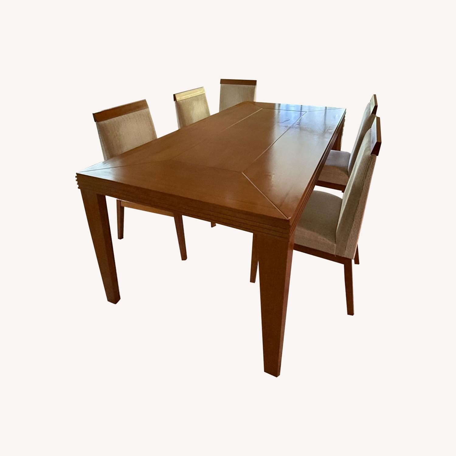 Seller's Notes:Beautiful dinning set made of solid Brazilian wood, with exquisite details (see pictures). Wood color: light brown.