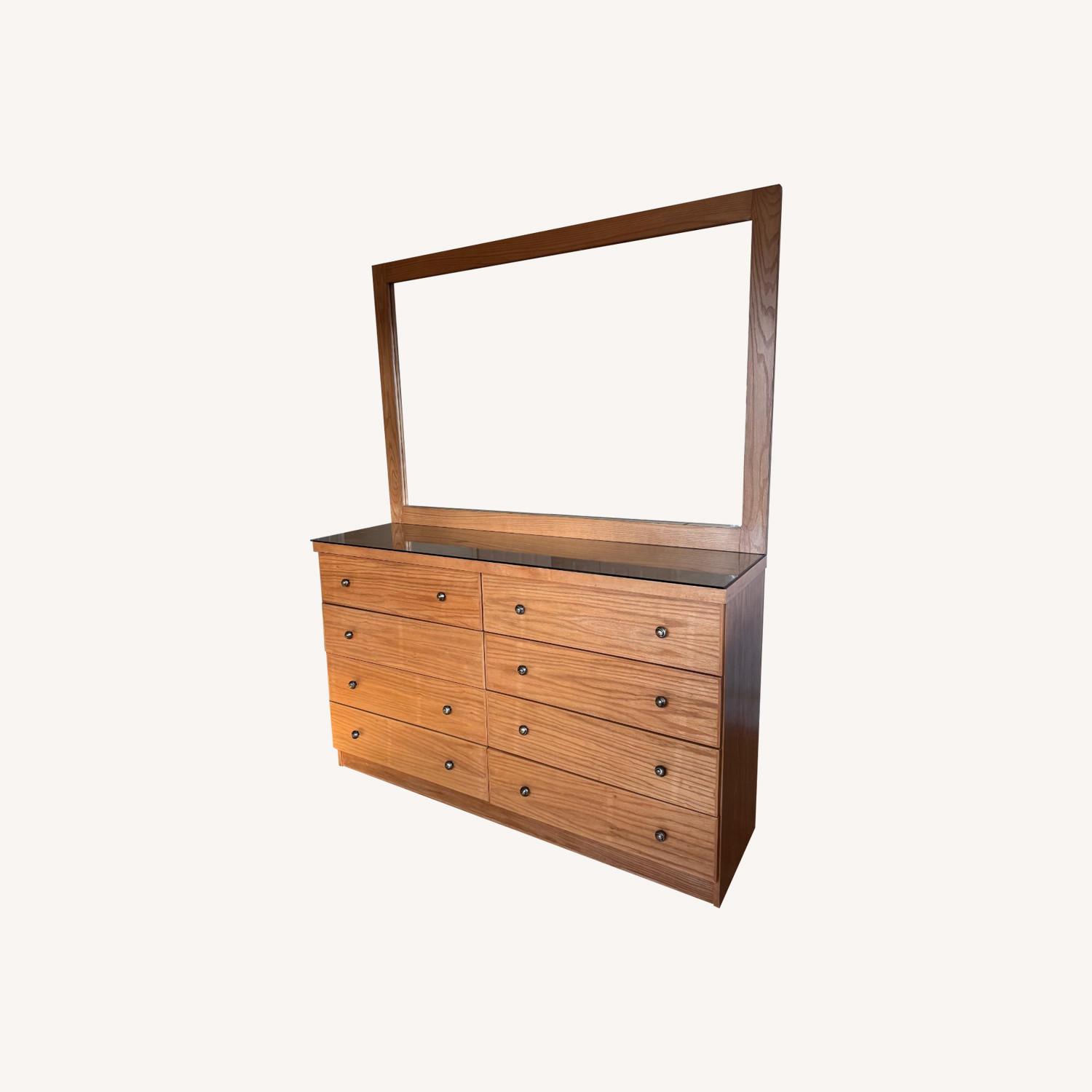 Seller's Notes:This is a solid wood dresser custom made in Egypt. It has well functioning channels for the drawers and a large mirror. With 8 drawers comes a lot of storage space. The drawer bases are made of boards and can handle heavy storage as well.