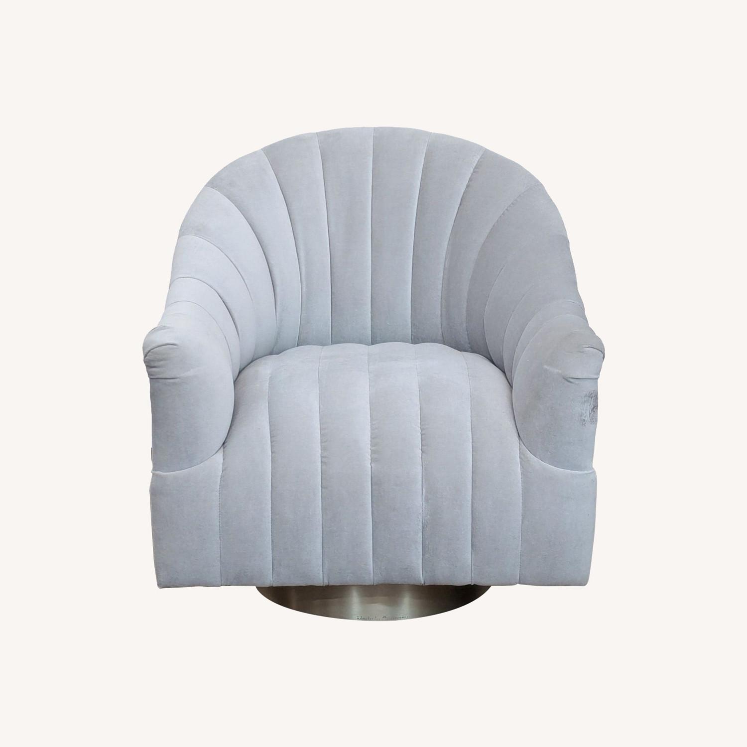Seller's Notes:The Springsteen chair by Arteriors Home features a barrel back, Flint velvet upholstery with channel tufting and a champagne swivel base. Full 360 rotating swivel.