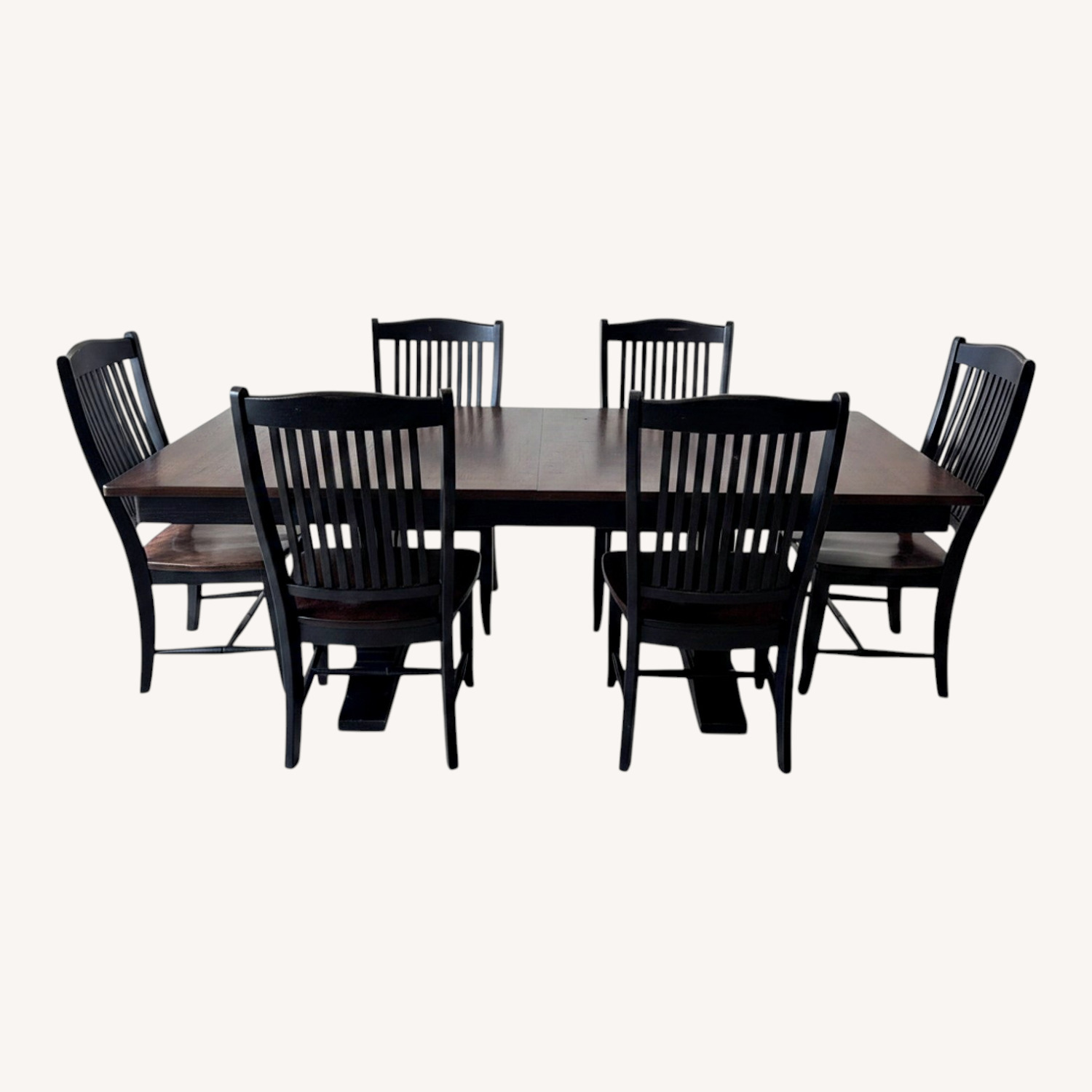 Seller's Notes:This is a dining table with 6 chairs and 2 leafs. The table when whole will set 12