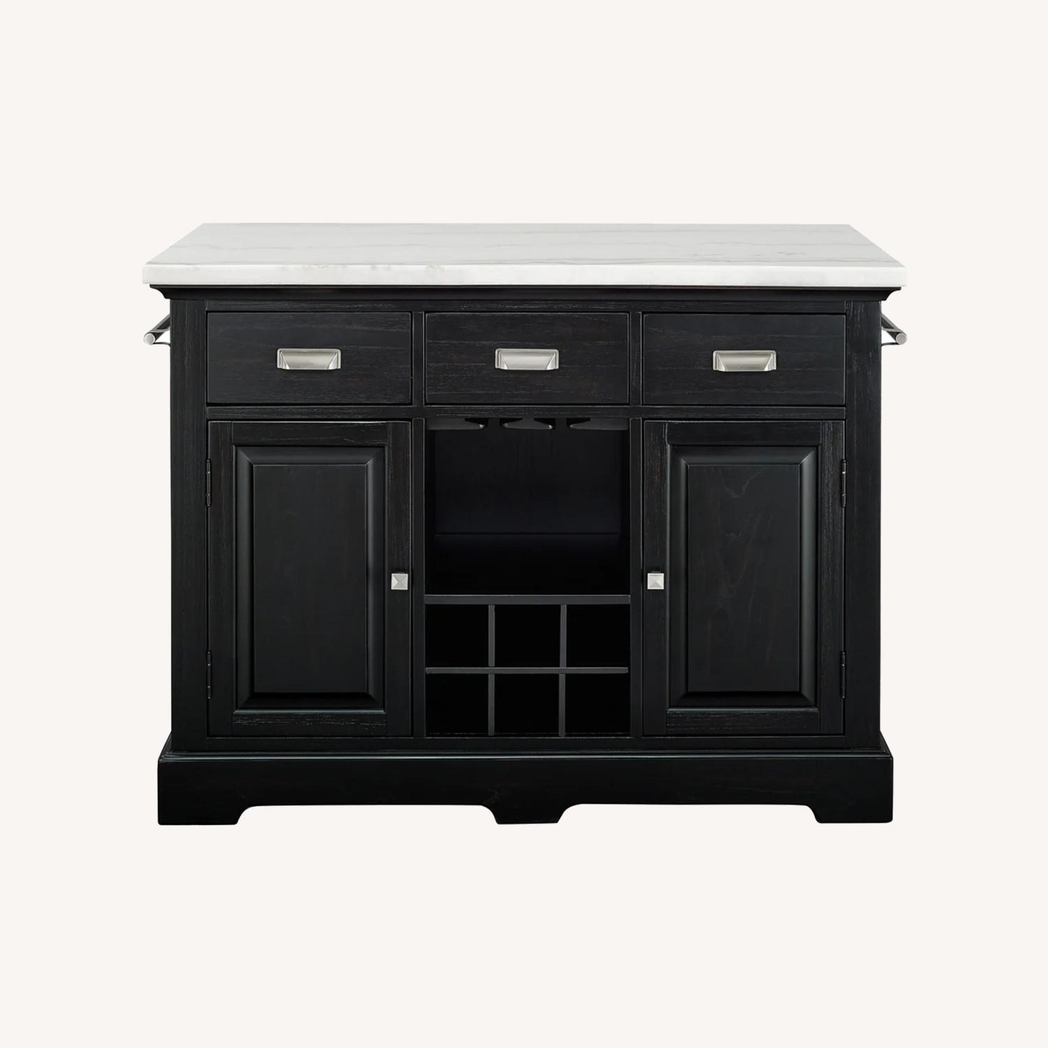 Seller's Notes:This piece by Steve Silver is named “Aspen”, item no. is : AS380CKT. I purchased the kitchen island in 2020 and have used it for 6 years. “Aspen” is no longer being sold by Steve Silver and can no be only purchased by second hand retailer or resellers like myself. It is beautifully made with black ebony wood, a marble countertop, and pewter side rails. The piece has some visible wear around one handle otherwise its condition has been very well maintained.