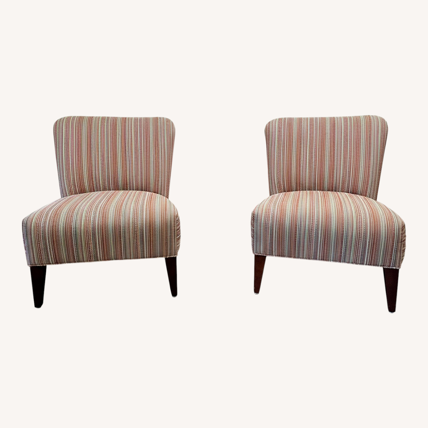 Seller's Notes:These beautiful accent chairs were custom made for my very first home! They've been scratched up a bit from my kitten as shown in the pictures but still look fabulous! Pillows are included if desired.