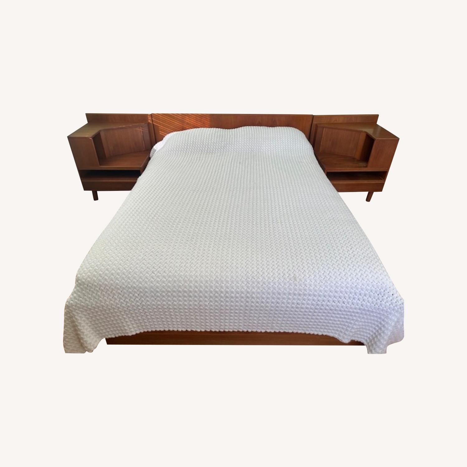 Teak Platform Bed With Headboard and Night Stands - image-1