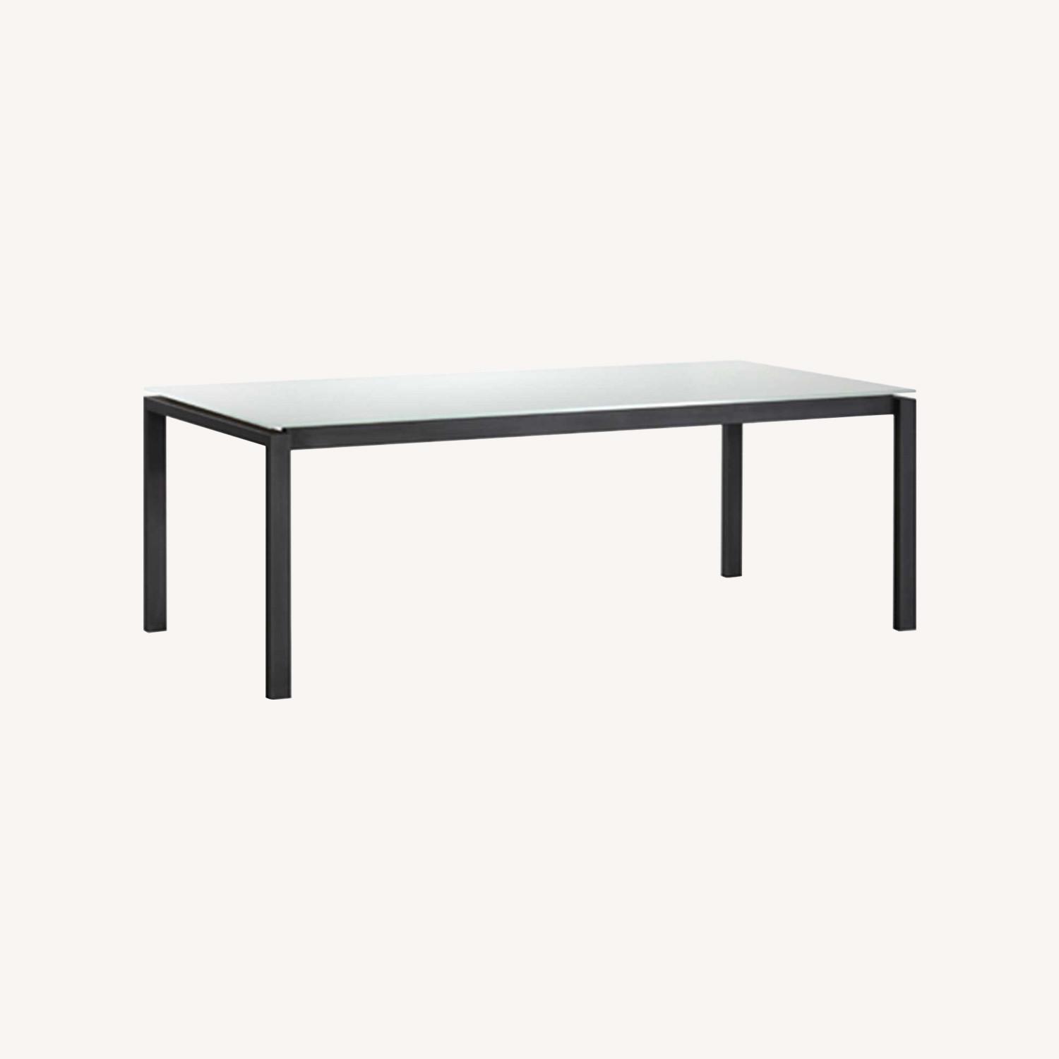Seller's Notes:From Circle Furniture in Massachusetts, this made to order modern design has a welded metal base with a tempered glass top.