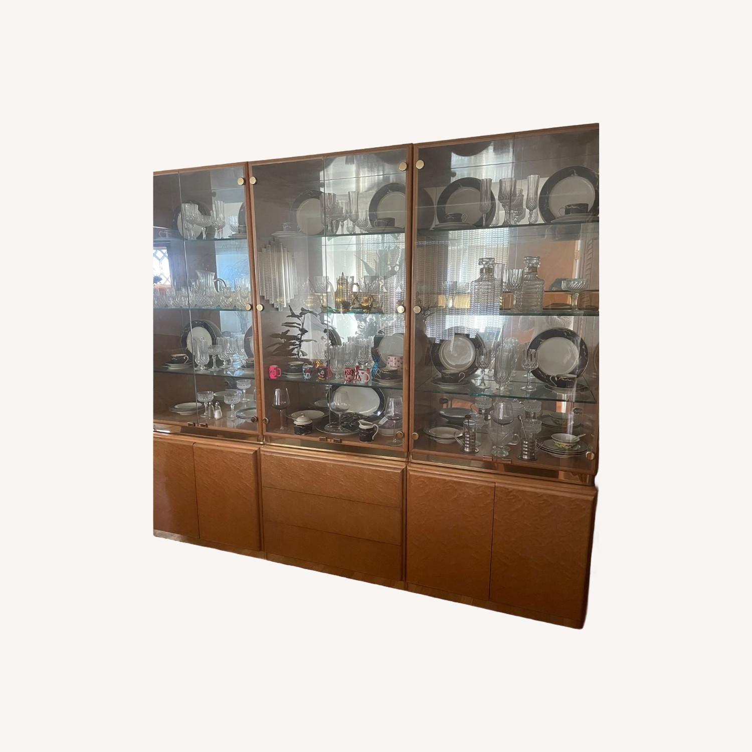 Seller's Notes:Downsizing..can't take this beatiful furniture with me. I also have a table with six chairs and a buffet... It's a beautiful laminated wood also there are lights inside.