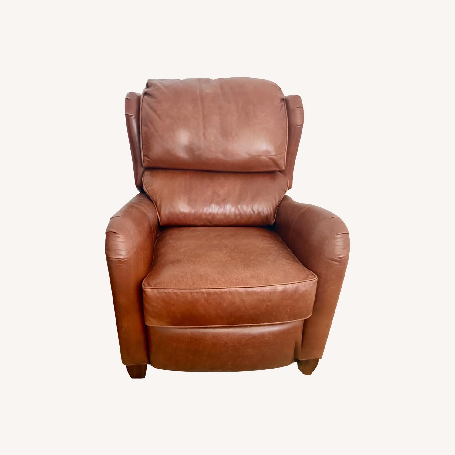 Seller's Notes:Beautiful Thomasville brand recliner in rich caramel leather. Classic pushback design (no bulky handles) with plush cushions and timeless style. ✨ Features: • 100% genuine top-grain leather • Warm brown/caramel tone • Pushback reclining function • Elegant curved arms and supportive cushions 💡 Pricing with condition factored and acknowledged - Price is well below average to reflect imperfections. READ THIS ENTIRELY PLEASE: 🪑 Condition: Overall in very good shape with soft, supple leather. Seat leans slightly to one side when sitting and some of the back upholstery staples have come loose (cosmetic only, doesn’t affect use). Still extremely comfortable and has plenty of life left. A “handy” person can adjust the bolt or tighten the screw (not 100% what it is) as I only just noticed the slight seat lean this morning. The leather on the back cover lower side has a few cosmetic staples have somehow unattached as well. I do not have the time and unfortunately I don’t have the space in new house. Time for a new life:)