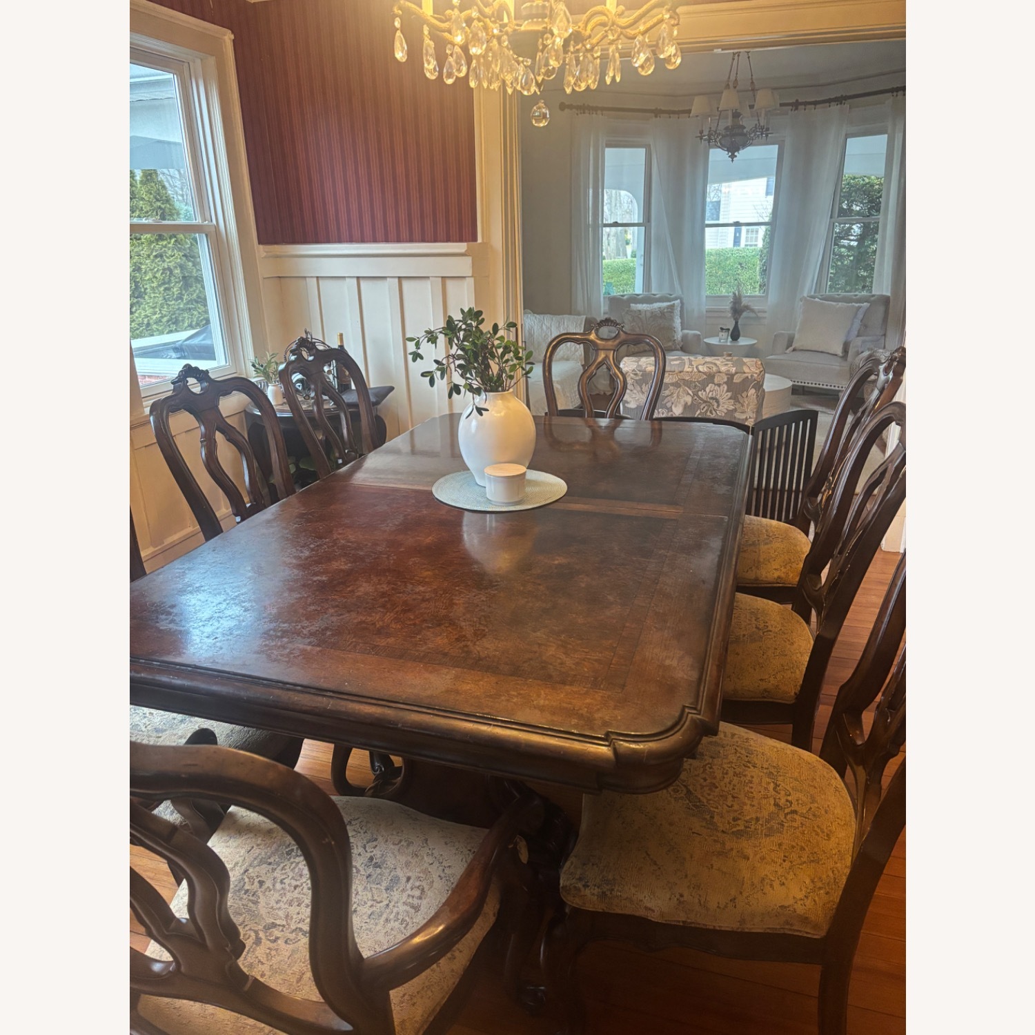 Seller's Notes:Dining set with buffet, table extends to 120 with 2 sleeves